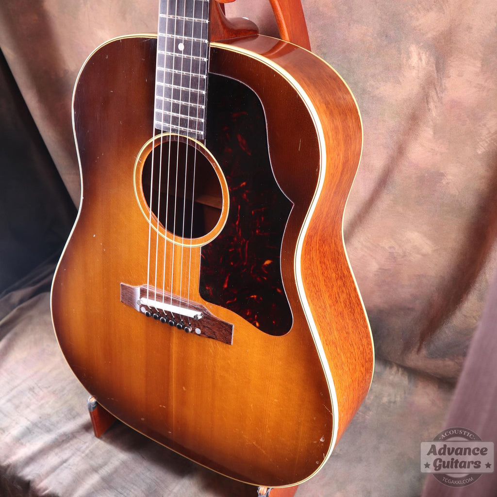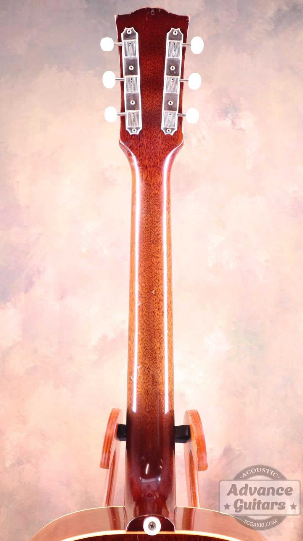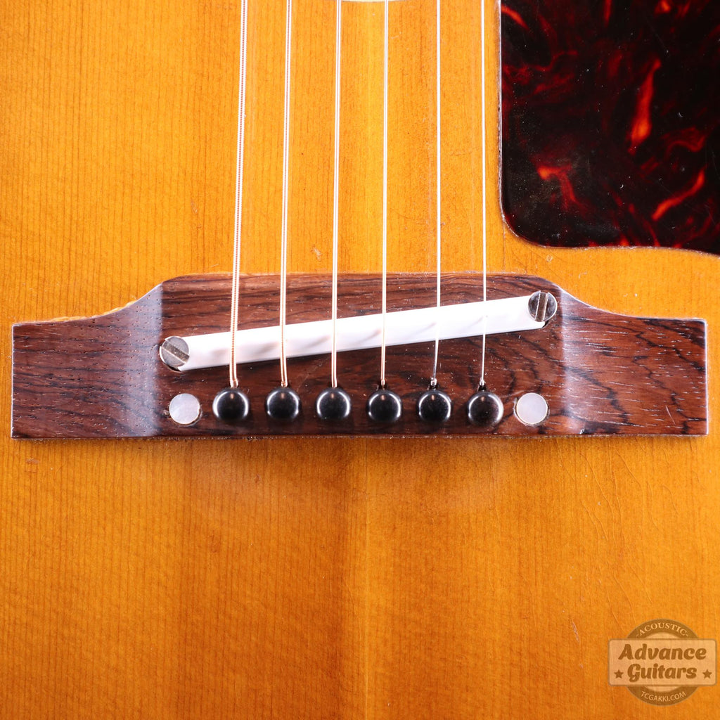 The year 1958 was the first year in which the number of adjustable bridges shipped exceeded the number of straight saddle bridges, indicating that the standard of the J-45 was changing. The mechanism that allowed easy string height adjustment without shaving the saddle must have been innovative even at that time. Gibson has been creating such historical assets from time to time, such as the invention of the adjustable truss rod. It is very moving to think that not only the adjustability but also the sound had a great impact on the sound, leading to the sound of Donovan and Takuro Yoshida's music. This particular piece uses replacement parts, so it is in 1960s specifications.