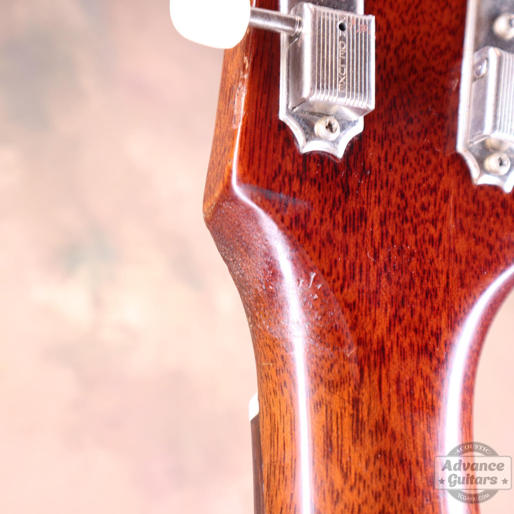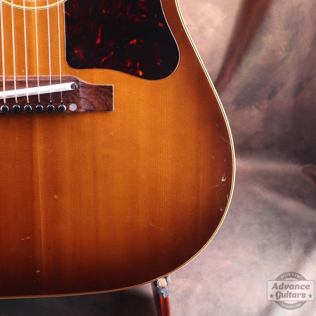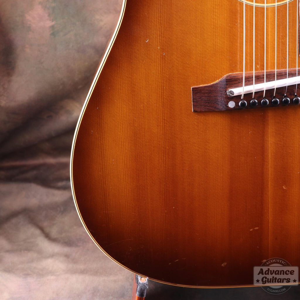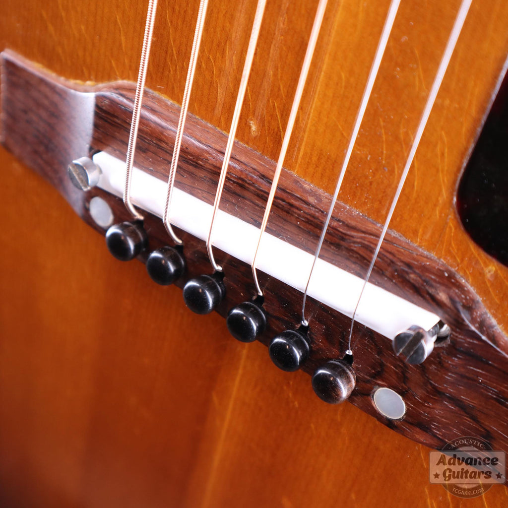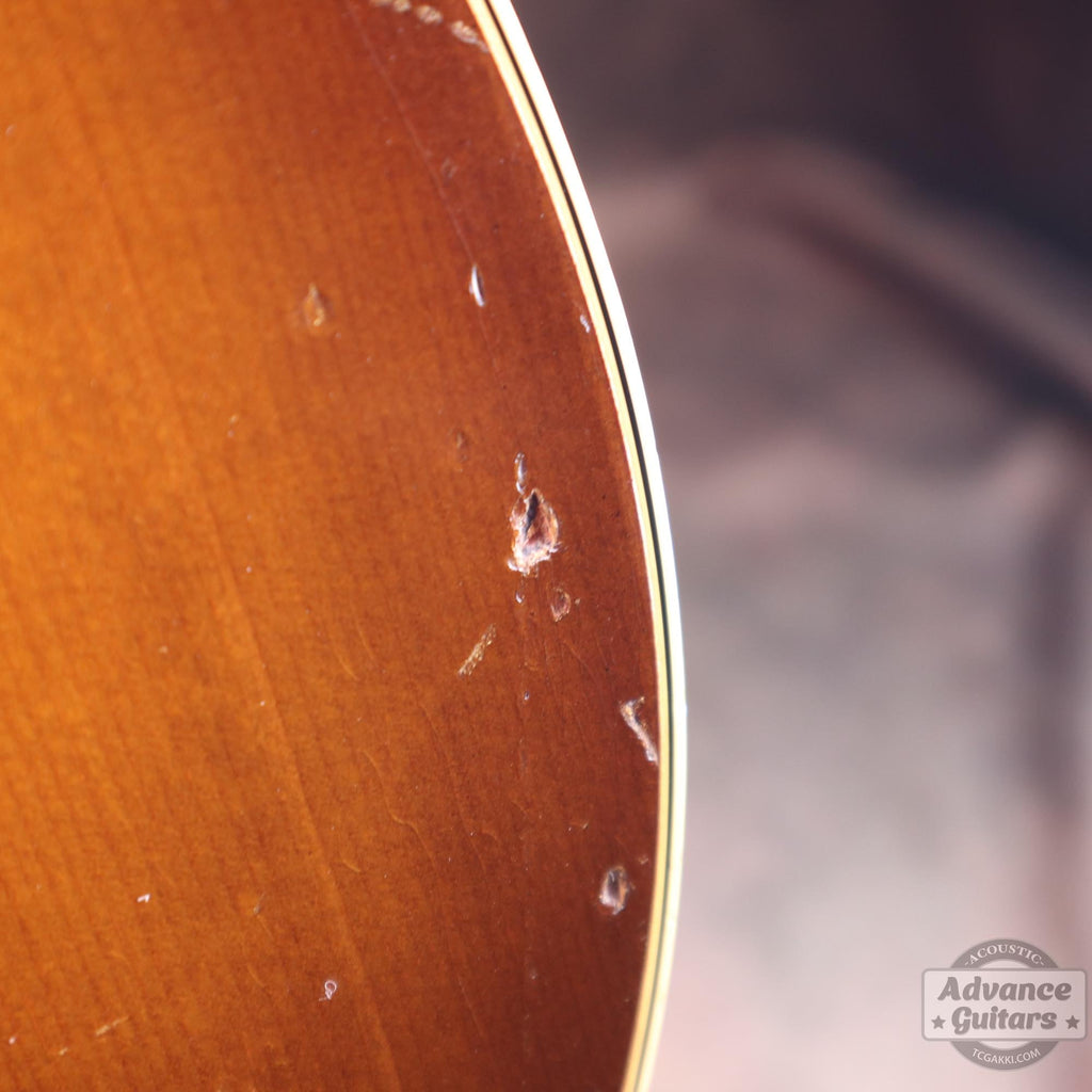 [CONDITION] -String height at the 12th fret : 2.2mm on the 6th string side, 1.7mm on the 1st string side -Adjustable saddle allows you to adjust the string height to your preference. -Crack repair on upper left and lower left of pickguard (glued/reinforced) -Saddle, bridge pin, end pin, and bridge plate have been replaced. -There is a strap pin attached to the heel of the neck -End pins have been extended.