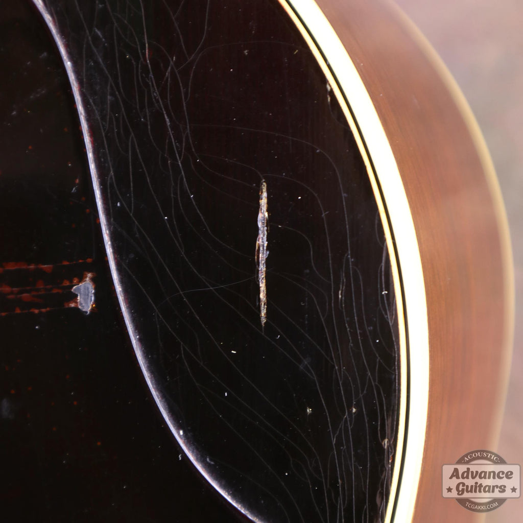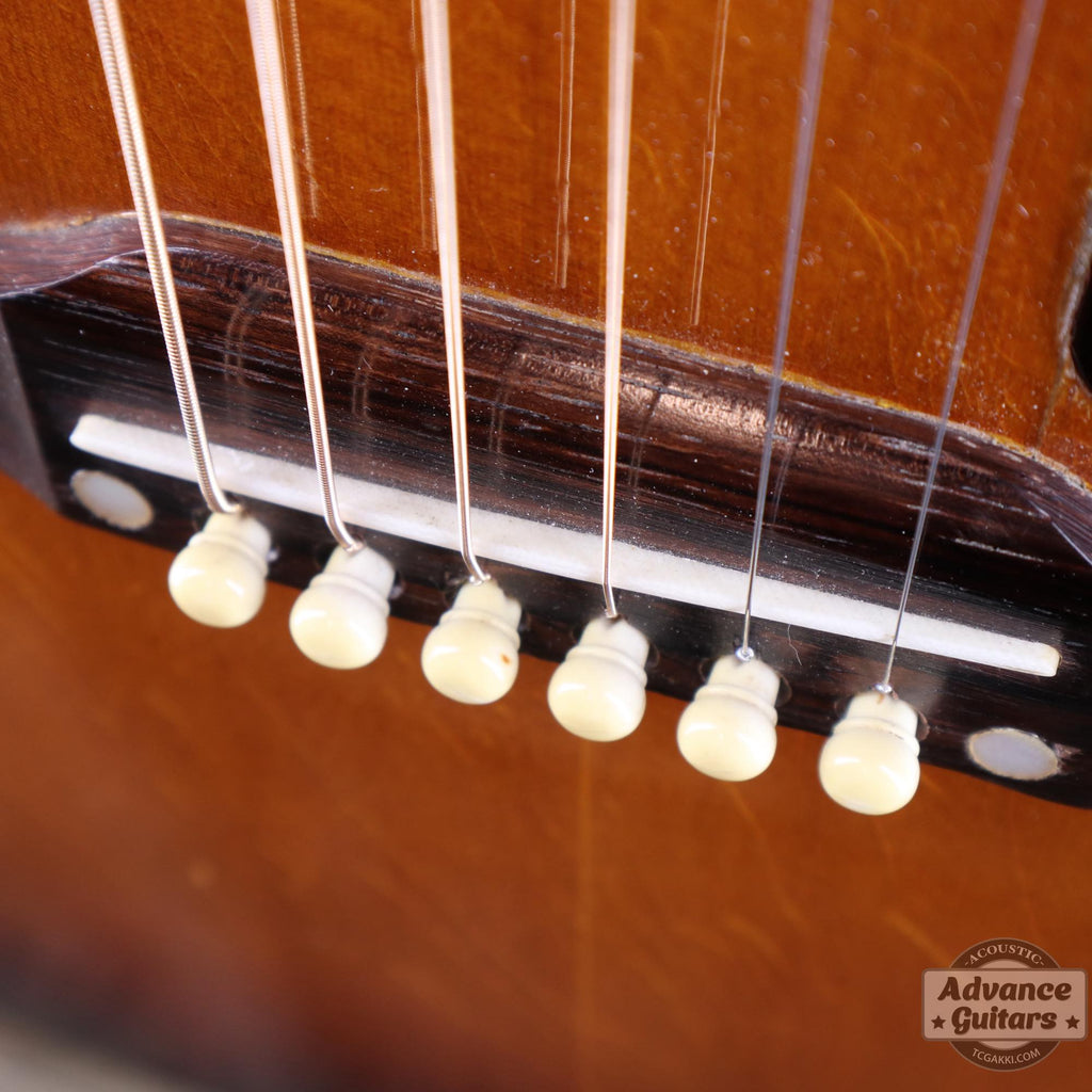 The rosewood upper bout bridge was modified to a short saddle starting in 1953, and this instrument also follows that specification change, using a short saddle.