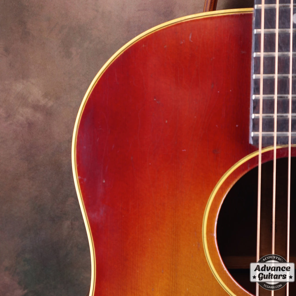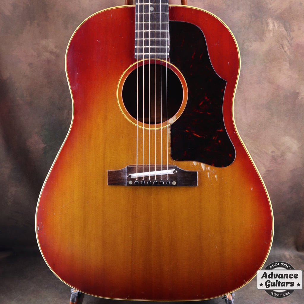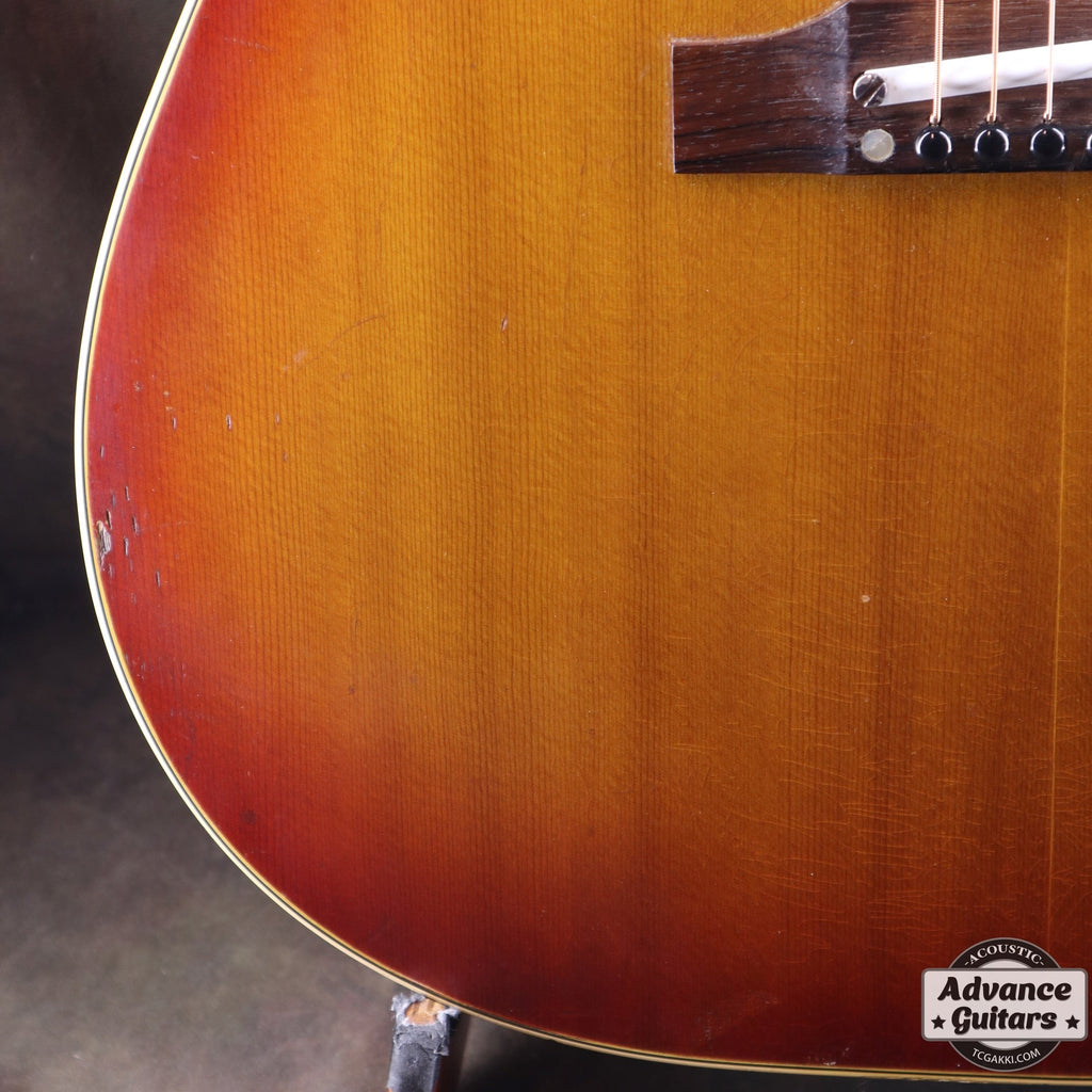 Amidst this movement, the J-45 also evolved, adopting a striking cherry sunburst finish around 1960, replacing the traditional sunburst.