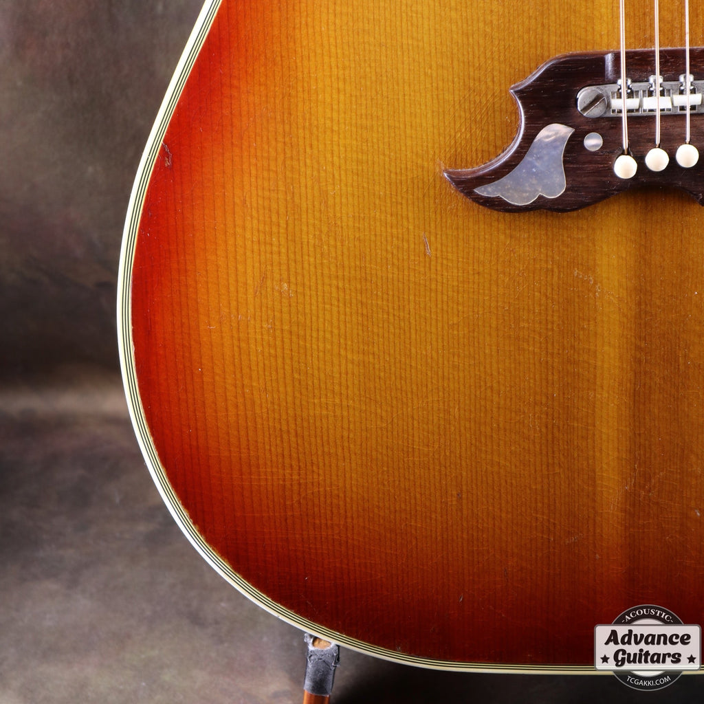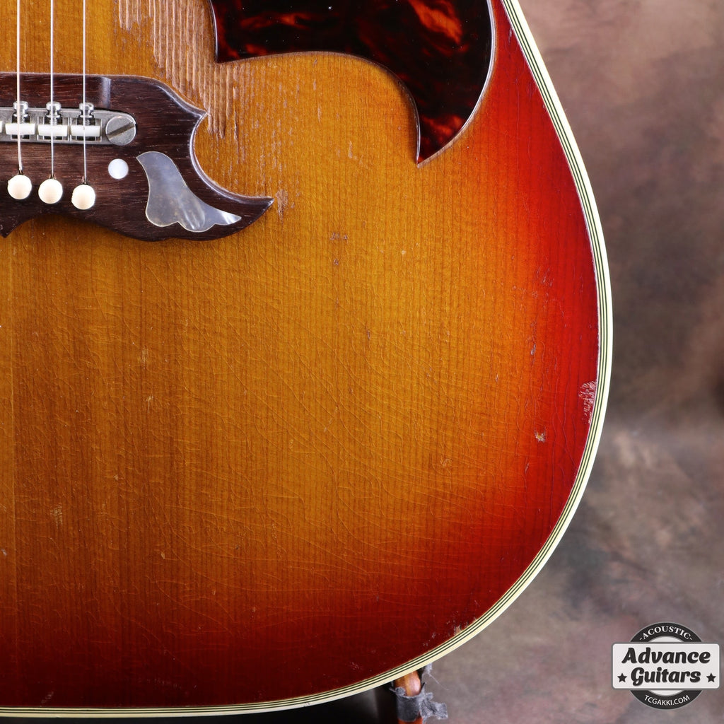 The top of the square-shouldered body is crafted from spruce and finished in a cherry sunburst color. A first-year DOVE retaining its vivid red hue even after over 60 years is a rare and precious instrument.