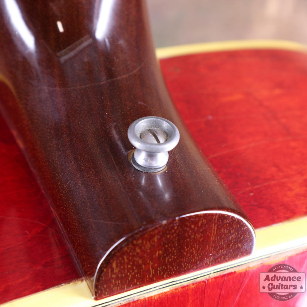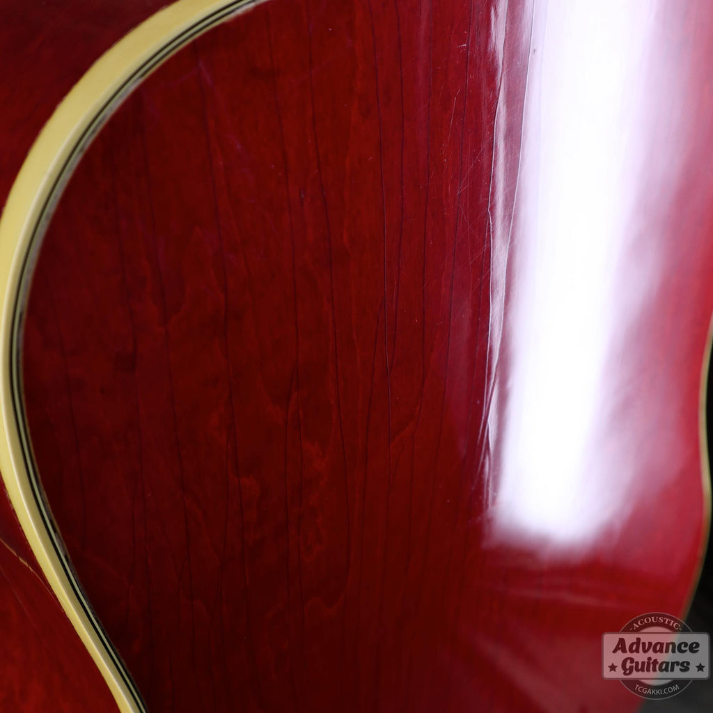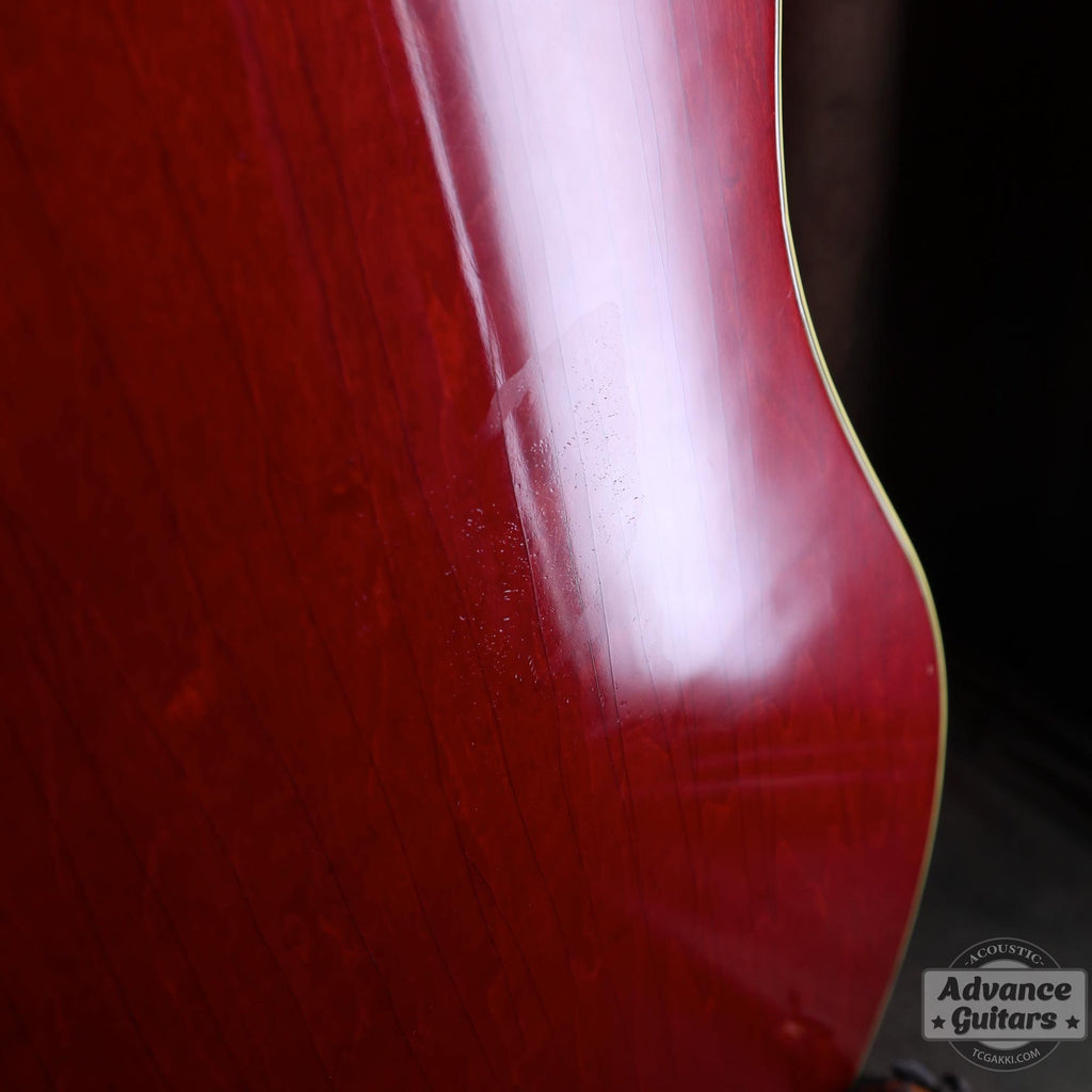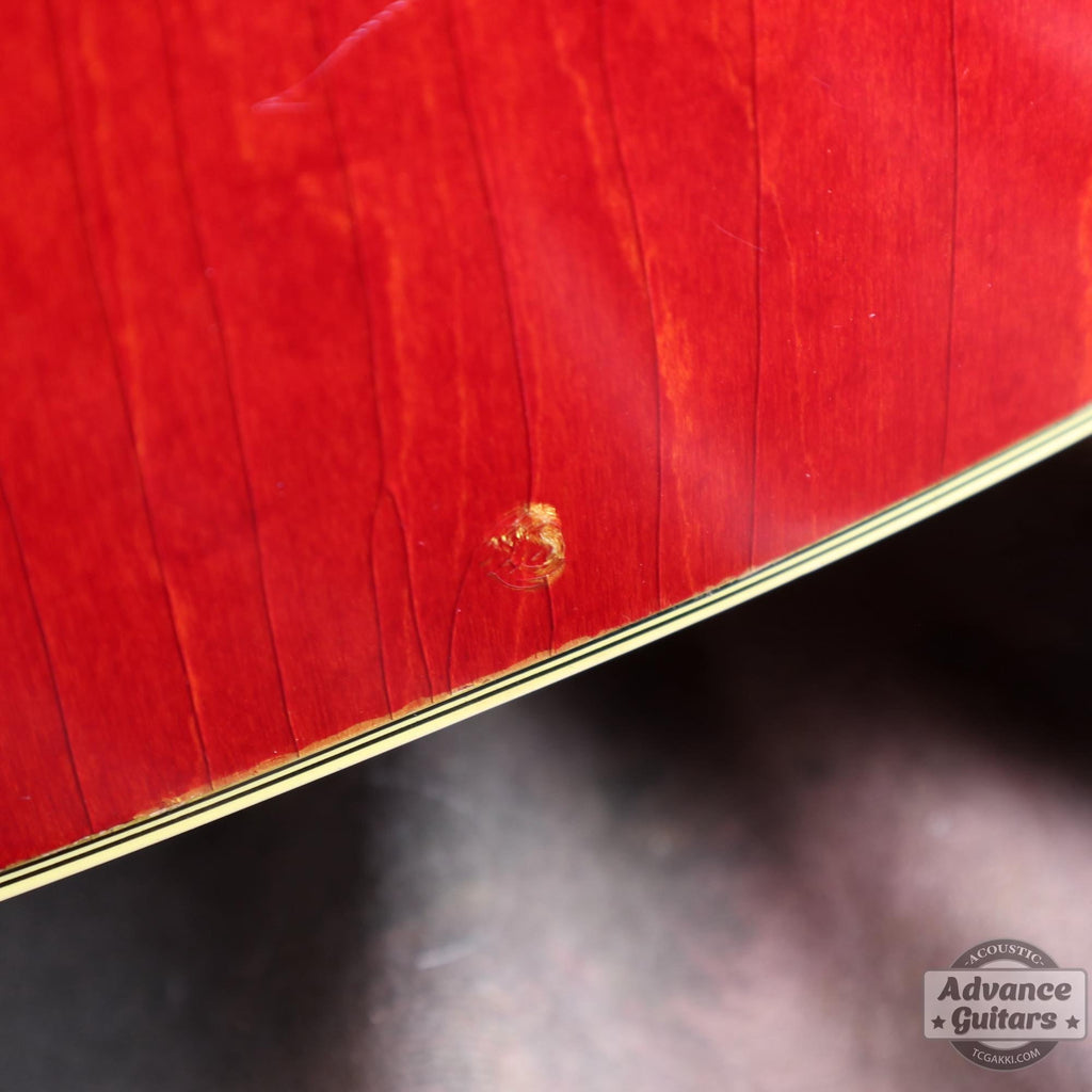 Finished in a vibrant cherry over a natural-colored top, the tortoiseshell pickguard design stands out beautifully.