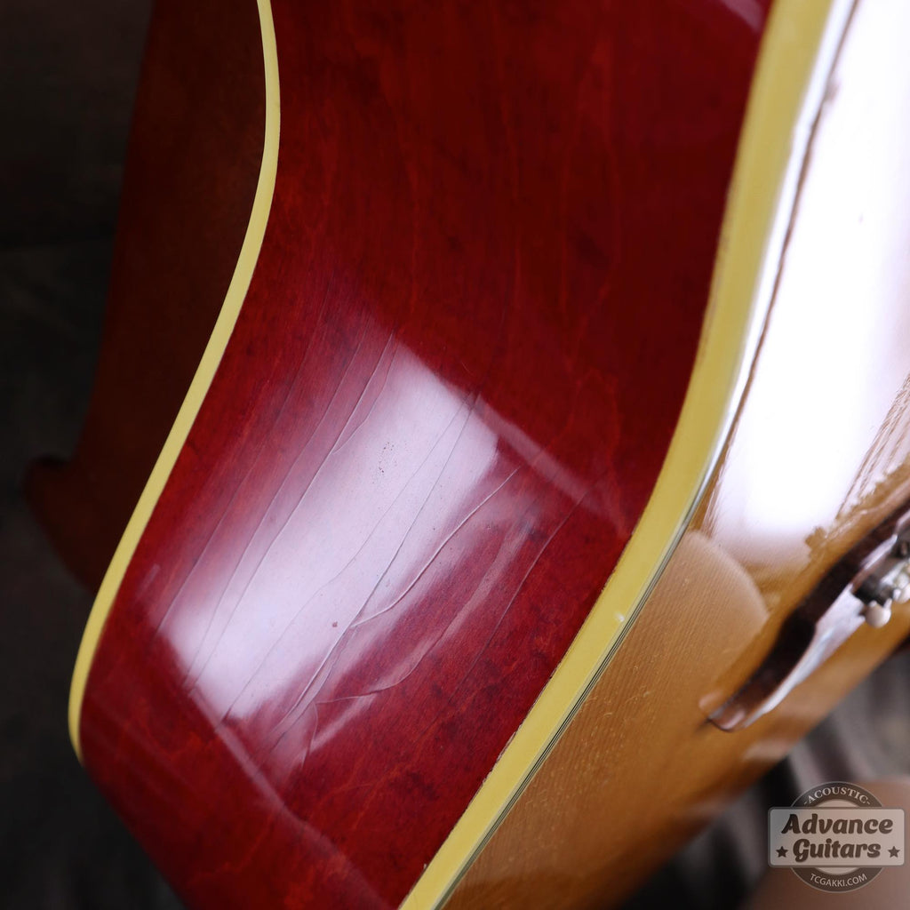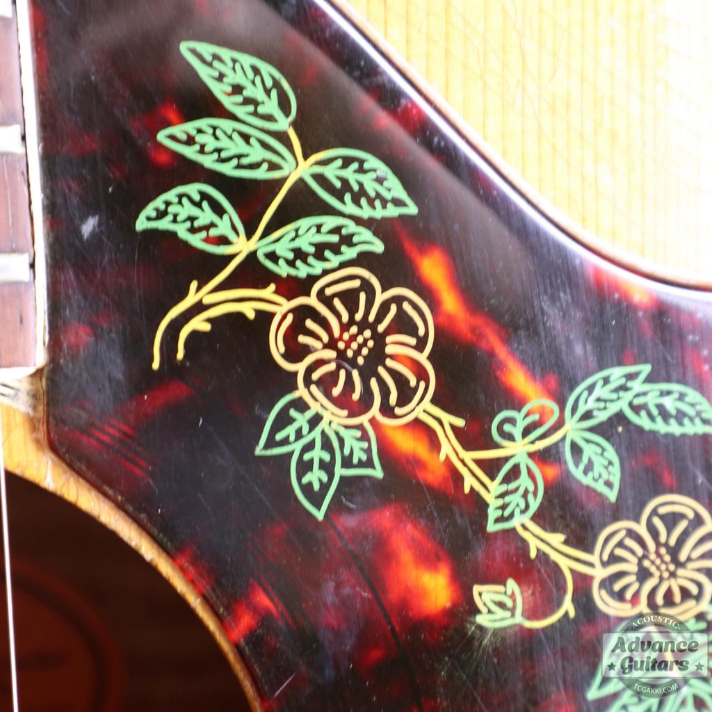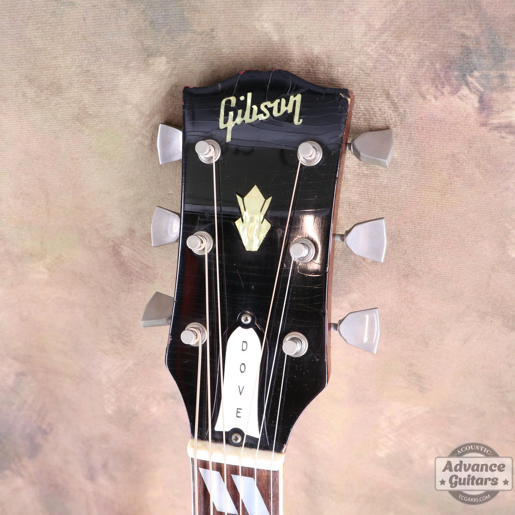 Comparing it to a 1963 cherry sunburst Dove, the branches are yellow, the leaves are green, and the flowers are red, while on a 1964 natural-colored Dove, the branches and leaves are colored the same, but the flowers are a pale orange.