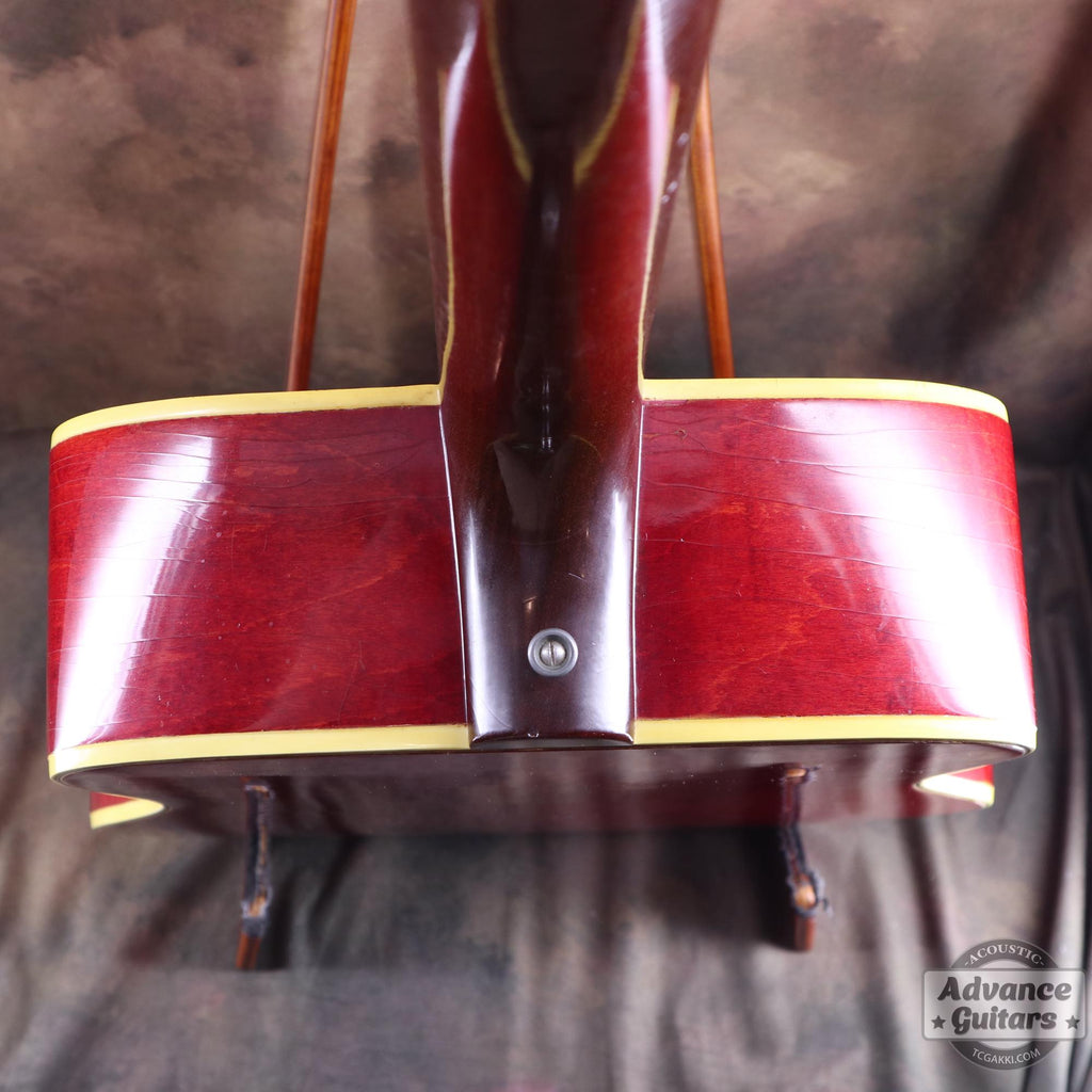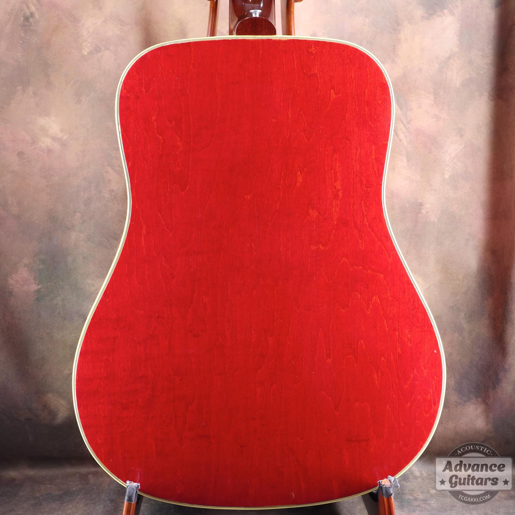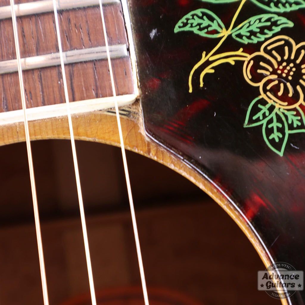 Comparing it to a 1963 cherry sunburst Dove, the branches are yellow, the leaves are green, and the flowers are red, while on a 1964 natural-colored Dove, the branches and leaves are colored the same, but the flowers are a pale orange.