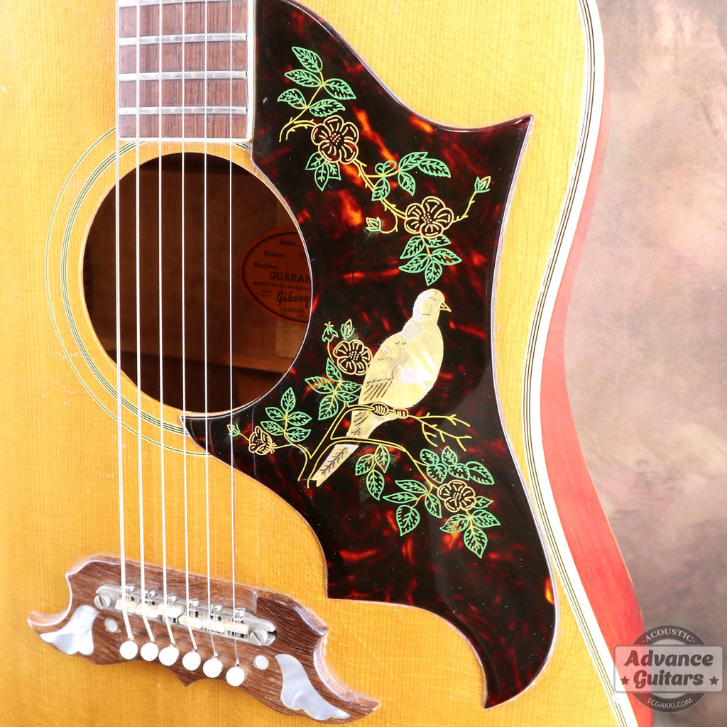 The rosewood Dove-exclusive bridge design features a pearl dove inlay and incorporates a Tune-O-Matic system.