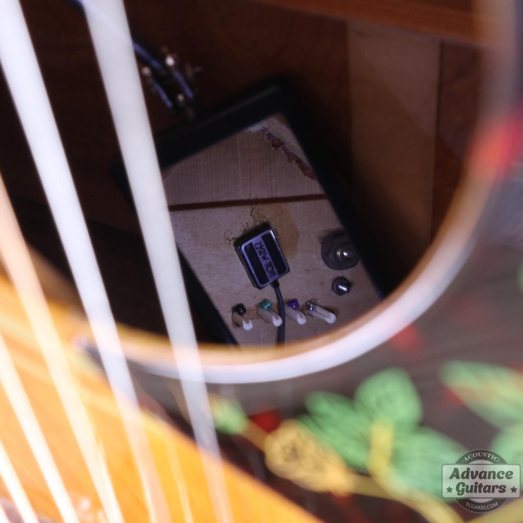 In addition to the pearl dove inlay, leaves and branches are carved, but the coloring of the ink varies depending on the year and individual instrument.