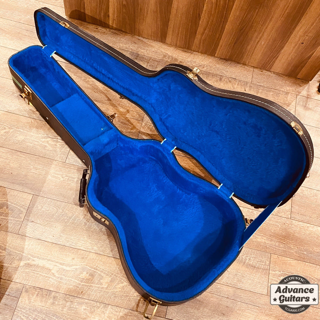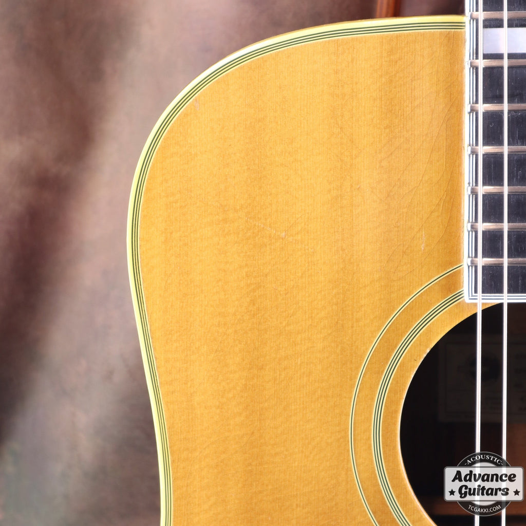 The large square-shouldered body utilizes straight-grained spruce, with weather checking adding a subdued character.