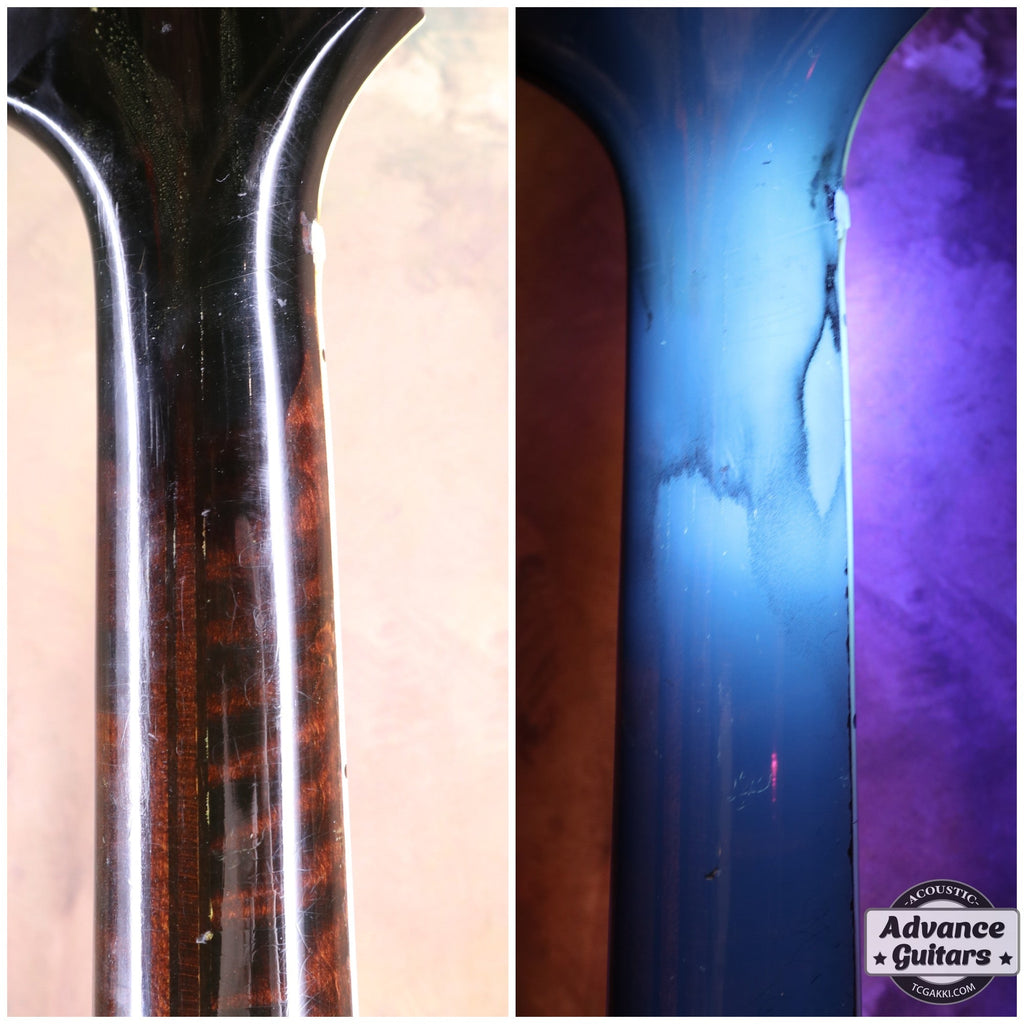 The neck features a slightly thicker profile and a 7P construction with walnut sandwiched between mahogany.