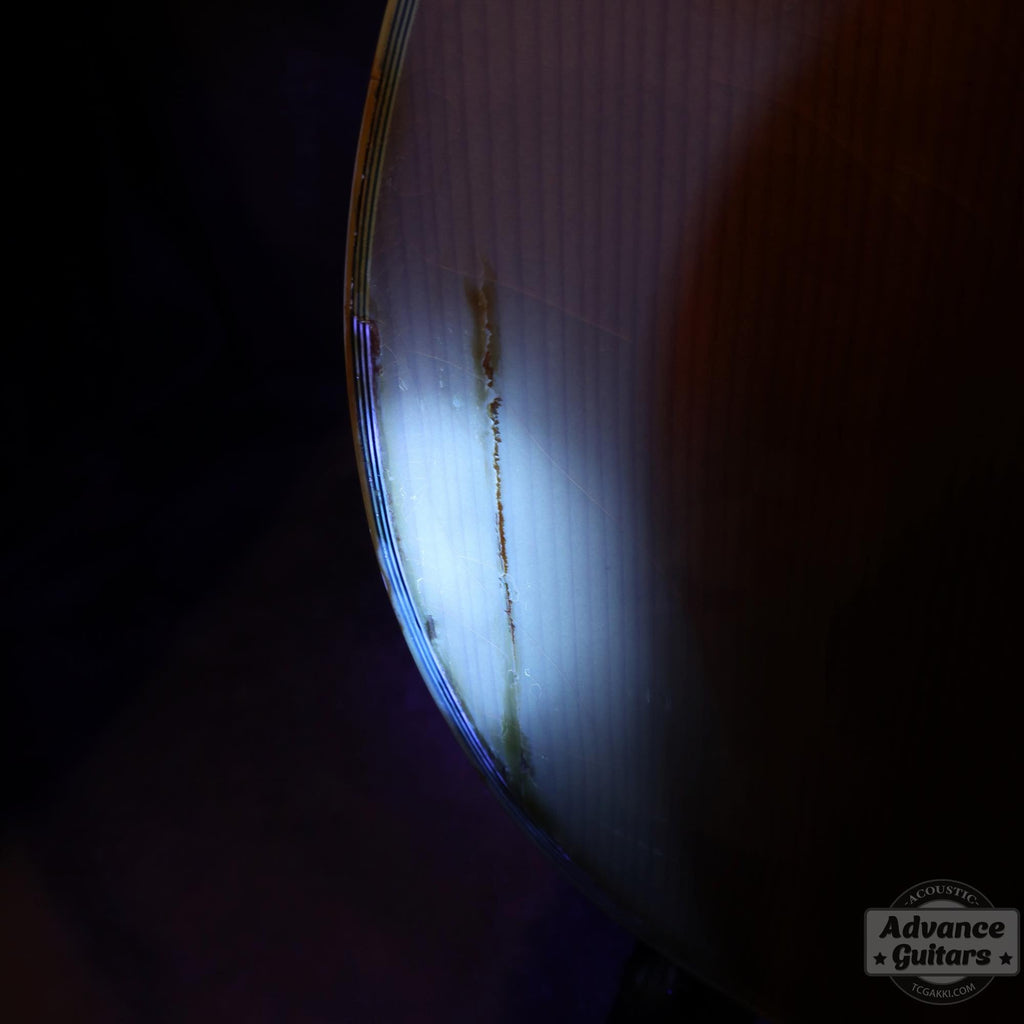 There are crack repairs in three locations: just above the soundhole, at the center below the saddle, and at the lower left of the body top. However, these have been thoroughly reinforced, so you can use it with confidence.