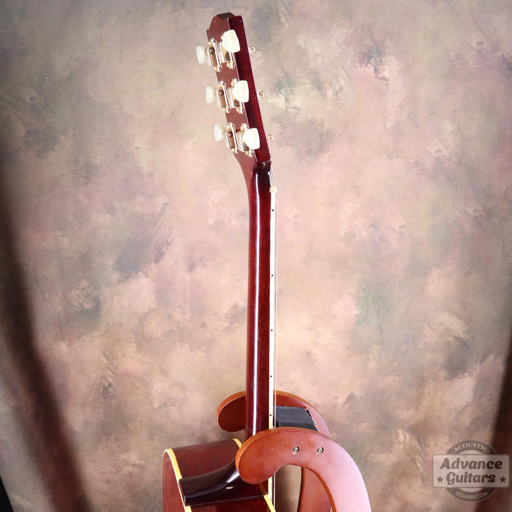 The rosewood bridge on the upper belly has been modified to change from an adjustable saddle to a slotted saddle.