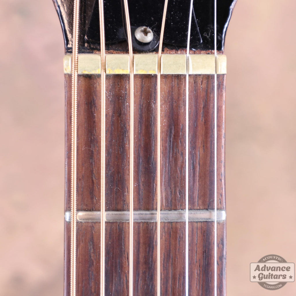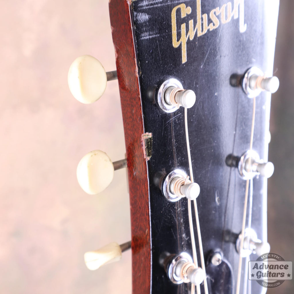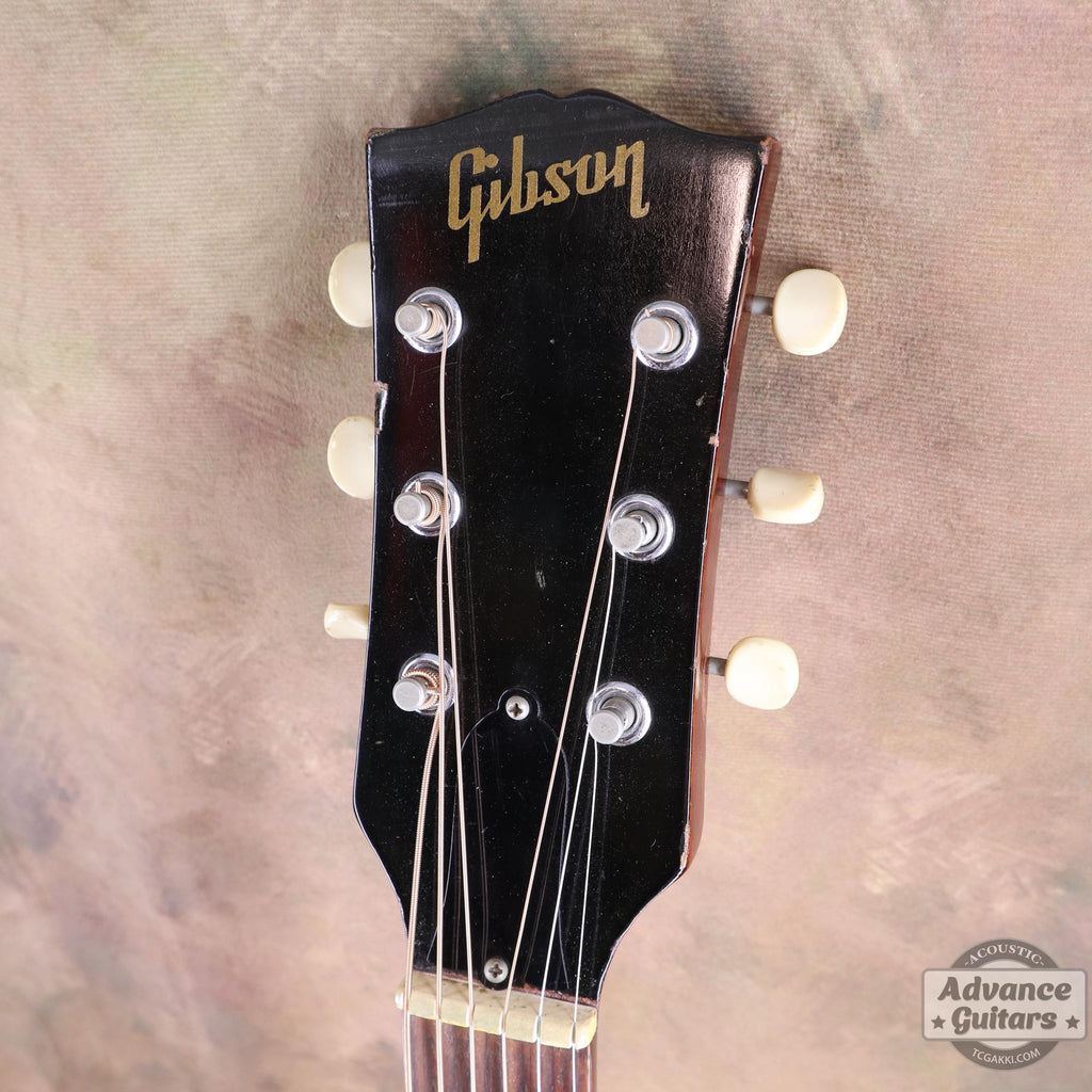 The headstock features Gibson's silk-screen logo and maintains the simple design characteristic of the LG-1, 2, and 3 models.