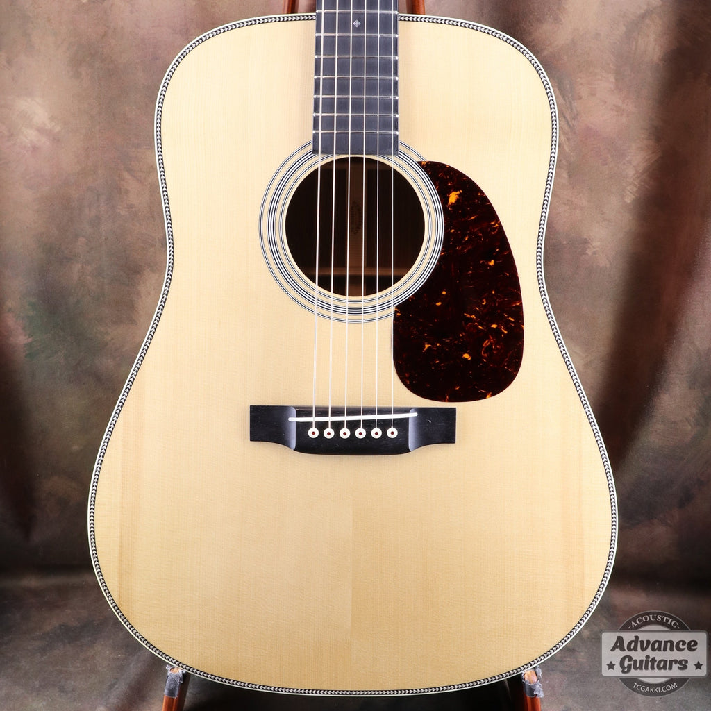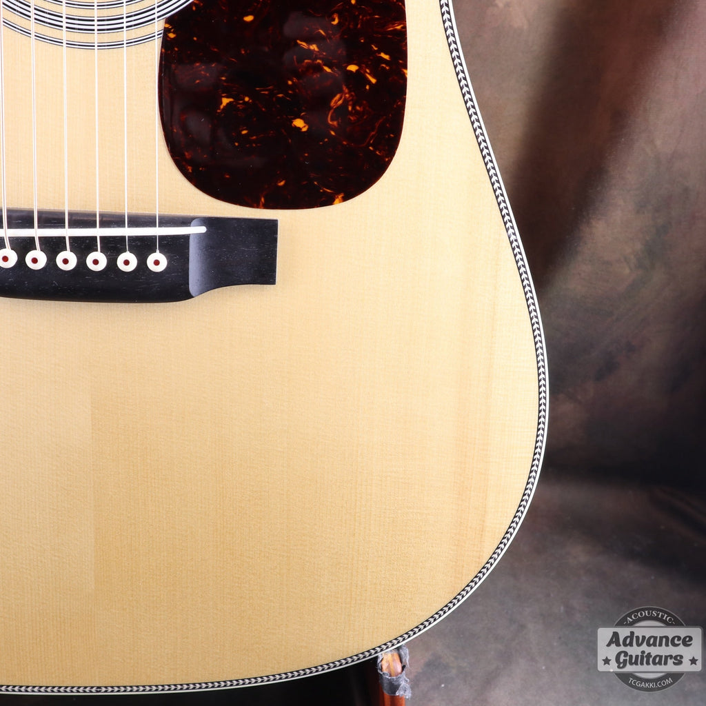 A CTM D-28 ordered from Martin by Miki Gakki. The top features selected Swiss Spruce. Swiss Spruce is a conifer from the Alpine highlands, characterized by its fine-grained wood.