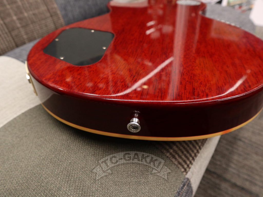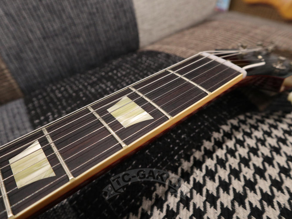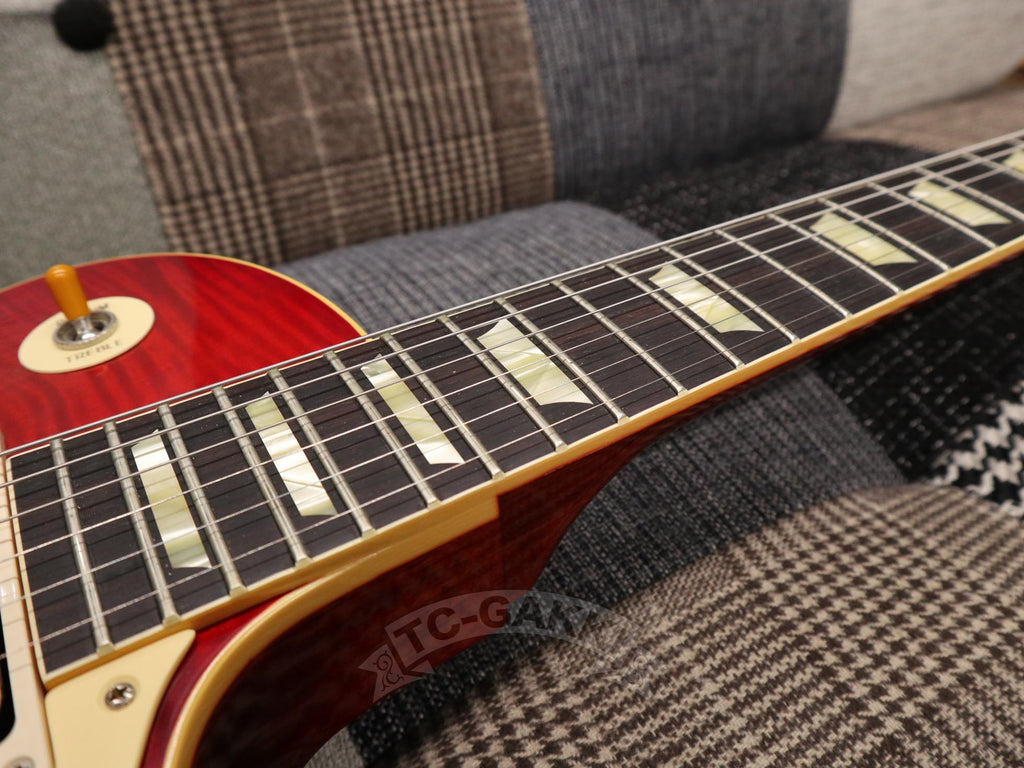 To bring that ultimate ideal to life, we placed a direct order in Nashville for this special 1959 Les Paul Standard Reissue. Its greatest appeal lies in the top-grade R-Top figured maple top, hand-selected on-site. It boasts a breathtakingly beautiful grain pattern not typically found in standard production models. Furthermore, it features a deep-joint construction and strong hide glue bonding, just like the models from the 1950s. The increased contact between the wood allows the body and neck to vibrate as one, producing superb tone and sustain.