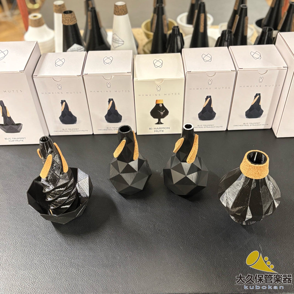 Hawkins mutes, which have been gaining attention across Europe for several years now. Their most distinctive feature is the eye-catching polygonal, unconventional design, but they are also exceptionally well-engineered. The excellent intonation goes without saying; they feel like you're hardly playing with a mute at all, making them very comfortable to play.