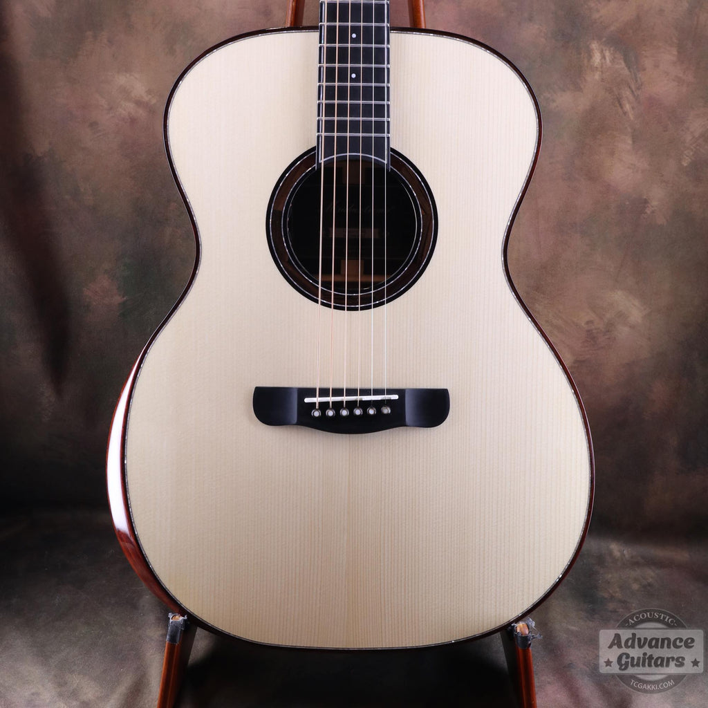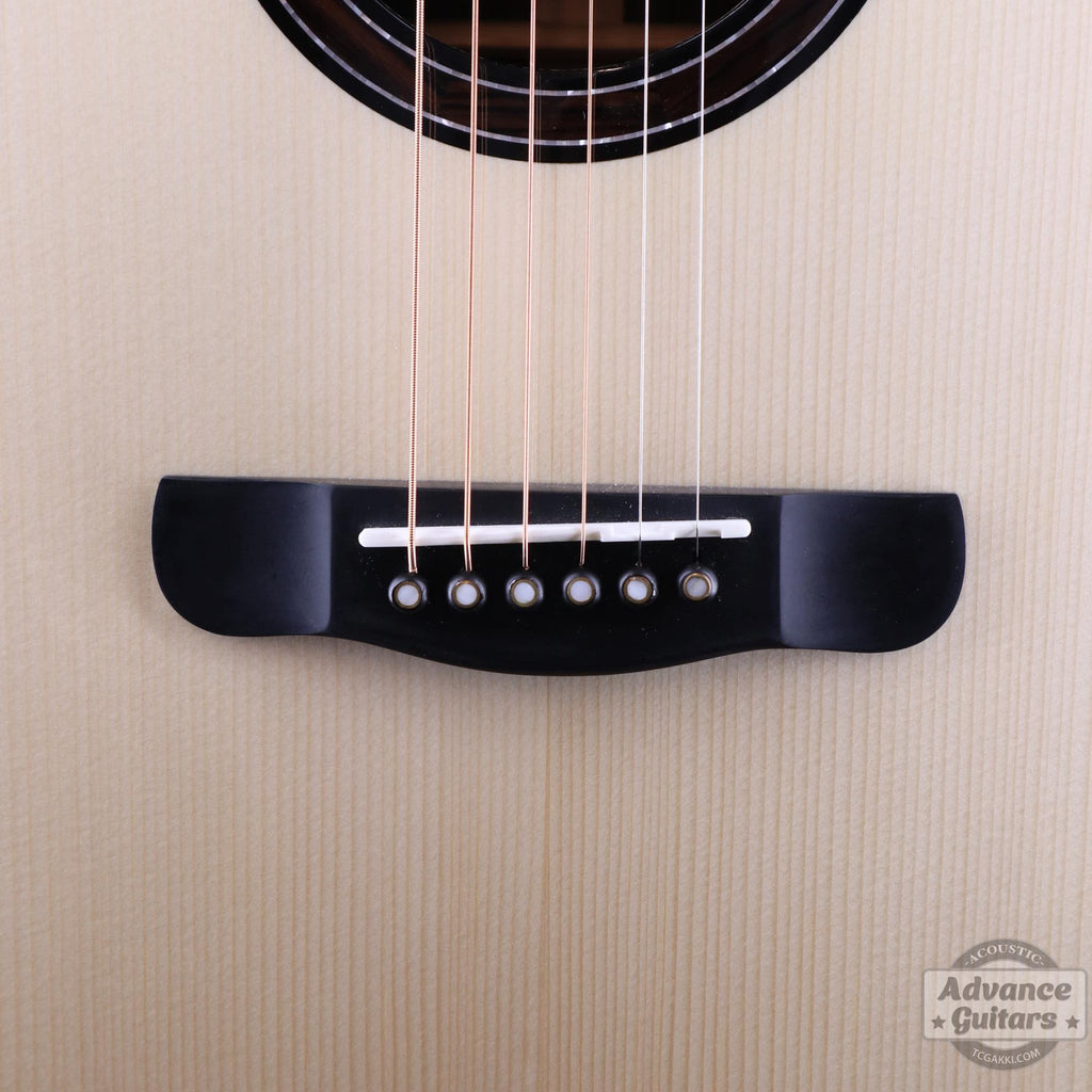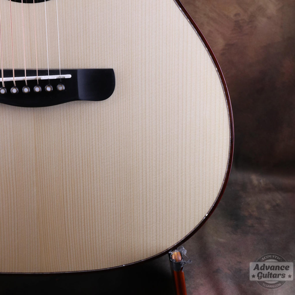 It shares characteristics similar to Adirondack spruce, producing a bright, powerful tone that resonates throughout the entire body.