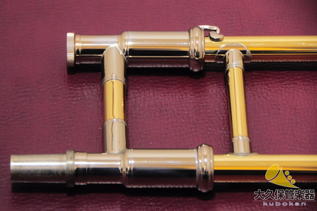 This instrument combines the characteristics of Yamaha's standard jazz trombone models, the "897Z" and "891Z," into a hybrid specification.It combines the light, responsive feel and crisp articulation of the 897Z's 7.5-inch bell with a slightly more compact bore size of 12.70mm, inspired by the 12.90mm single-bore slide (parallel bore) used in the 891Z. Furthermore, this is a custom model featuring a gold brass bell, available only through special order.