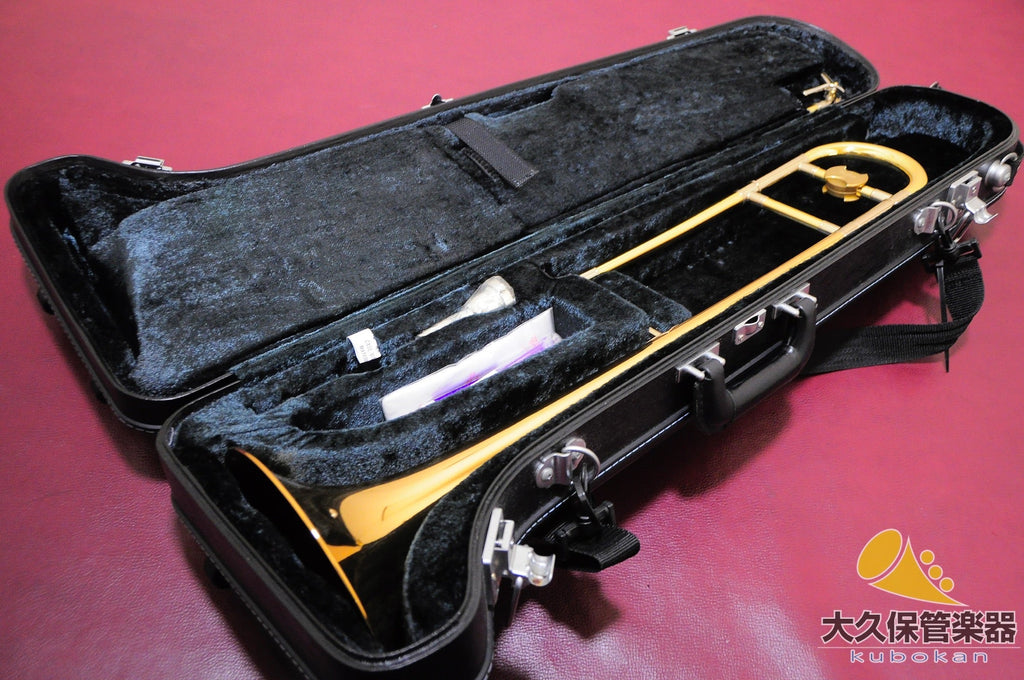 Yamaha narrow bore tenor trombone Z series custom model 897Z special order.Bell: 7.5-inch single-piece gold brass bell. Slide: 12.70 mmparallel bore. Outer slide: Yellow brass. End crook: Nickel silver. Two interchangeable mouthpipes (NY+ type, LA+ type*). Tuning slide: Yellow brass. Lacquer finish. 2 022 model.Accessories: Genuine hard case (no key/faint scratch marks on back), mouthpiece ( 46C2 unopened ), slide cream, grease, gauze. NewPrice: ¥473,000