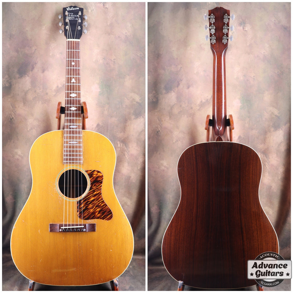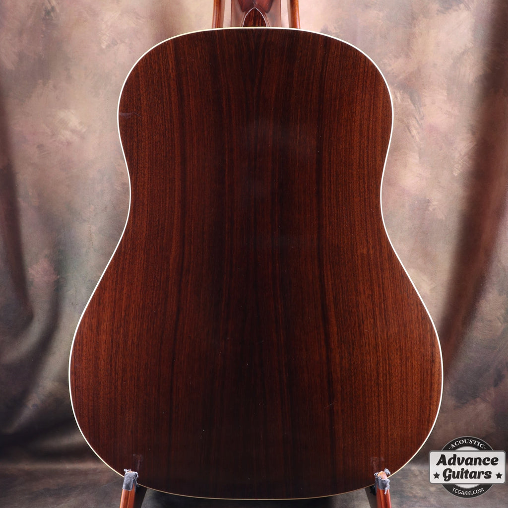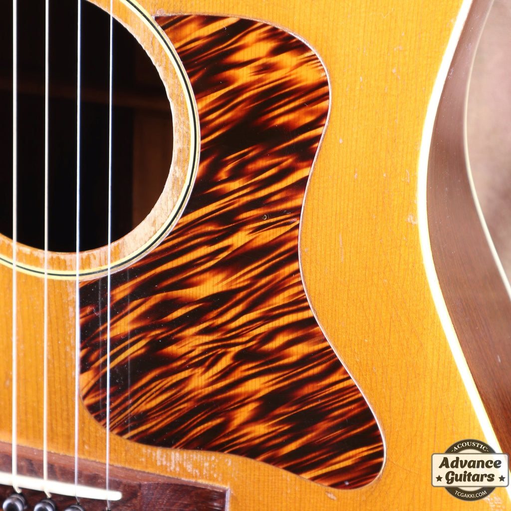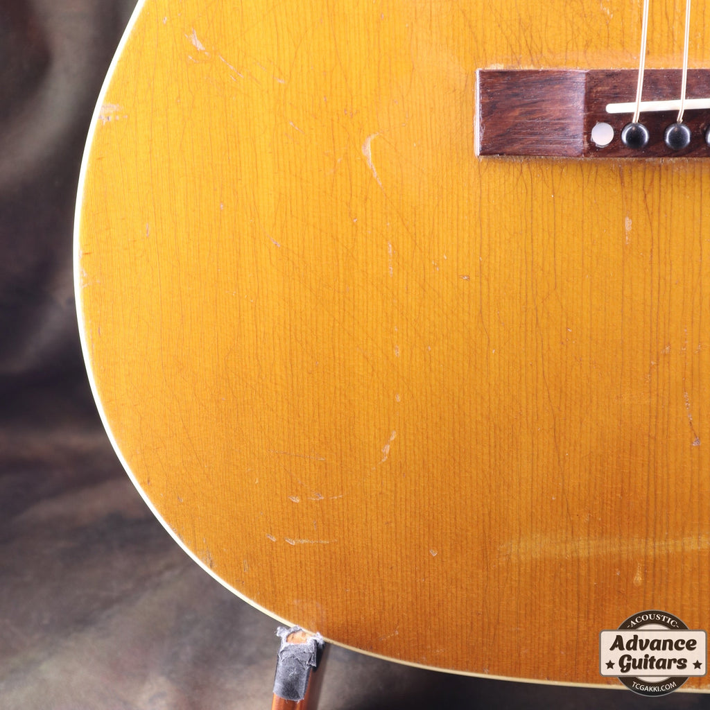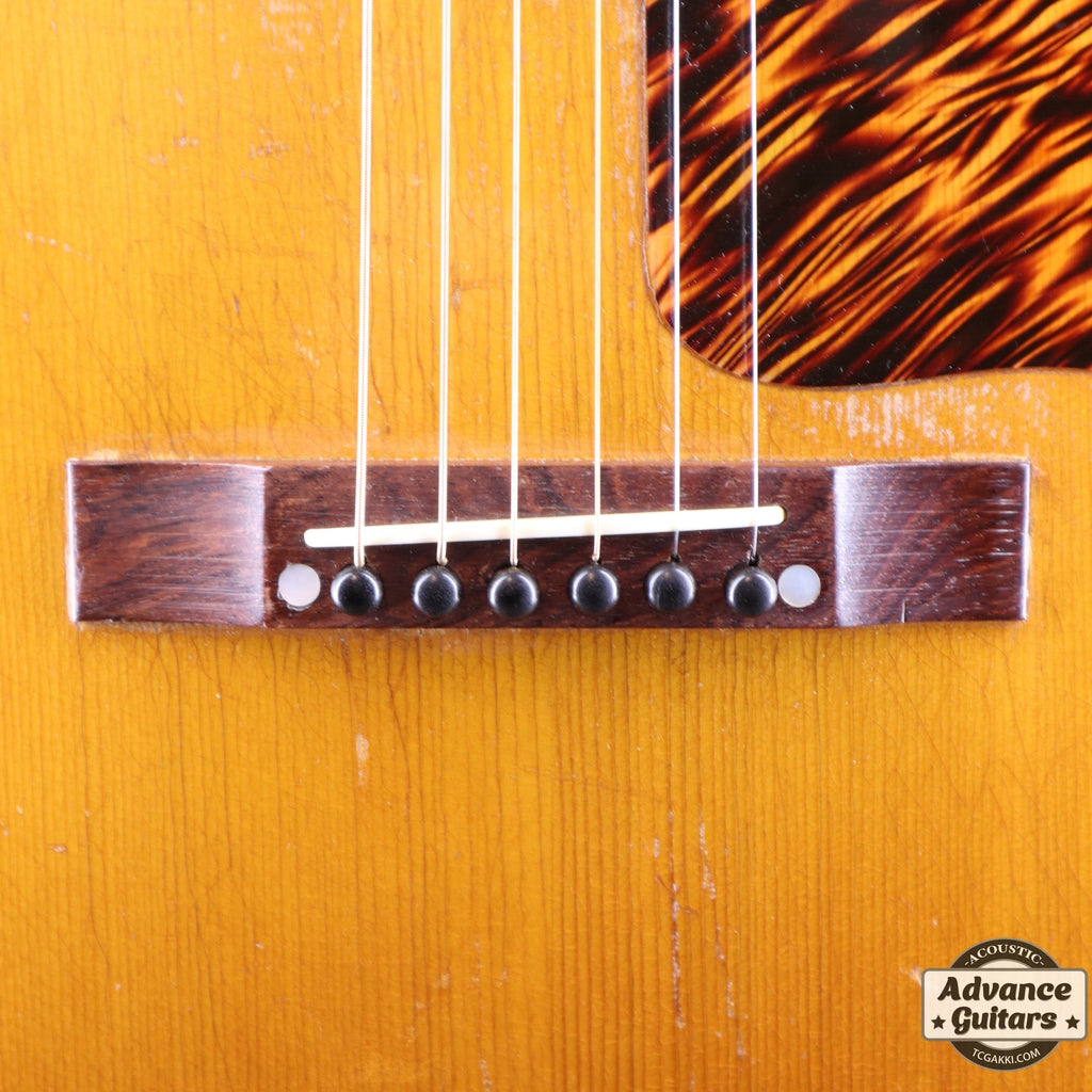 El cuerpo de abeto con hombros redondeados, que recuerda al J-45, lleva las marcas de casi 90 años de uso: arañazos, abolladuras y grietas le dan un aspecto digno.