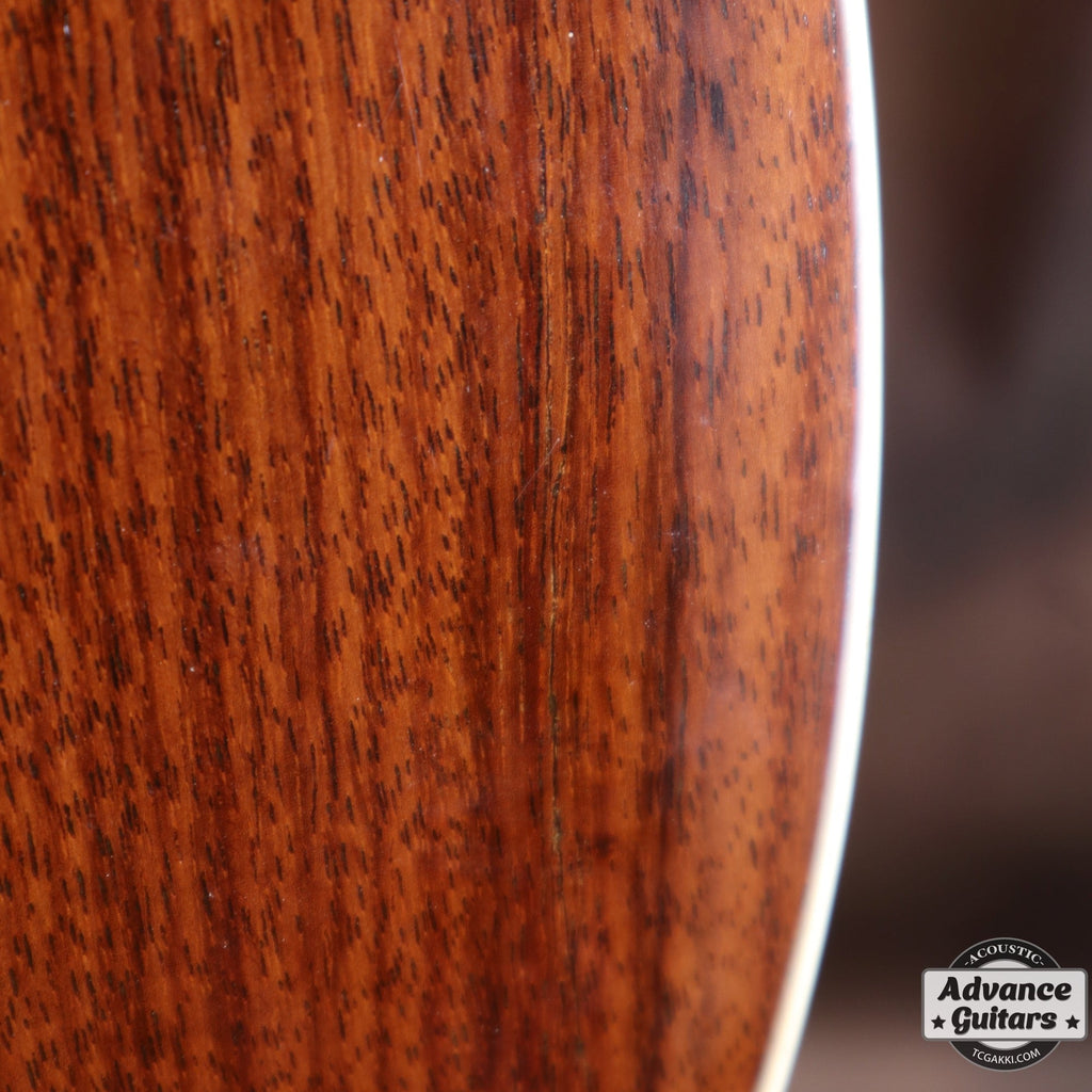 Este instrumento se caracteriza por su sonido nítido y vivo al rasguearlo, y las vibraciones que emanan del cuerpo son un encanto único de esta guitarra en particular.