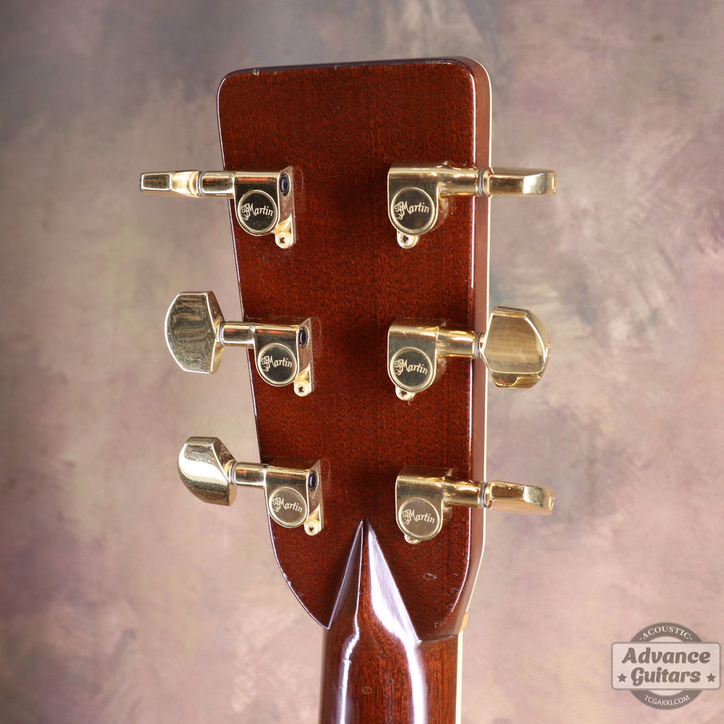 El clavijero, chapado en palisandro, tiene una forma redondeada, con incrustaciones verticales de concha de abulón que evocan una sensación de superioridad y afirman la propiedad del instrumento más emblemático de Martin.