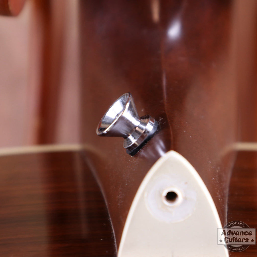 Se ha añadido un pasador para correa al talón del mástil, con evidencia de un segundo punto de montaje visible.