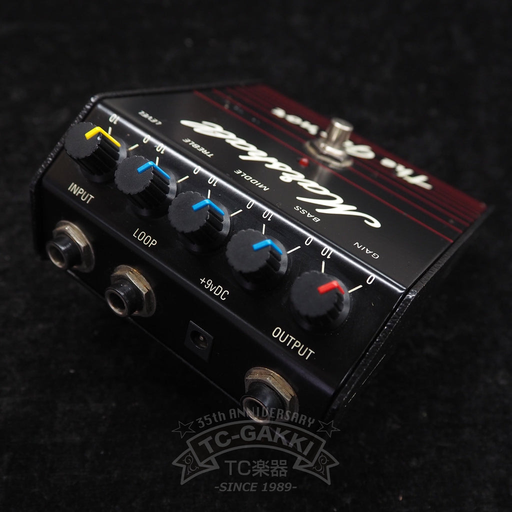 Su sonido drive, que emplea un clipper LED, es auténticamente Marshall. ¡Este es The Governor, famoso en su momento por permitir que incluso un JC (Jazz Chorus) sonara como un Marshall! Recuerdo que se popularizó rápidamente gracias al uso que le dio Akira Takasaki en aquella época. Dentro de su intensidad, se puede percibir un brillo rico y lustroso en los medios. El ecualizador de 3 bandas de amplio rango permite una modelación del tono muy flexible. Cuenta con un conector Effect-Loop (Send & Return) que se conecta con el interruptor Bypass de la unidad. Es posible conectar otros pedales de efectos utilizando un cable con conector estéreo ⇔ conector mono ×2. El Governor original, lanzado en 1988, se fabricaba en Gran Bretaña, mientras que la reedición de 1998 se fabricó en Corea. Incluso entre los originales fabricados en Gran Bretaña, las primeras unidades tenían placas de circuito verdes, mientras que las posteriores tenían placas azules. El Governor fabricado en Gran Bretaña utilizaba amplificadores operacionales Motorola o Texas Instruments TL072CP (o TL072C), mientras que la reedición coreana emplea amplificadores operacionales JRC 072BD (o 072D). Comparando el sonido de la reedición coreana con el original británico: la versión británica ofrece un sonido rico y denso con amplias frecuencias medias y bajas. Por el contrario, la reedición coreana tiene una respuesta de alta frecuencia más fuerte y un rango medio-bajo ligeramente menos pronunciado. También se ha lanzado una versión reeditada recientemente.