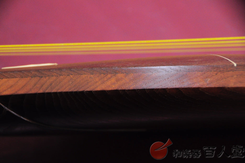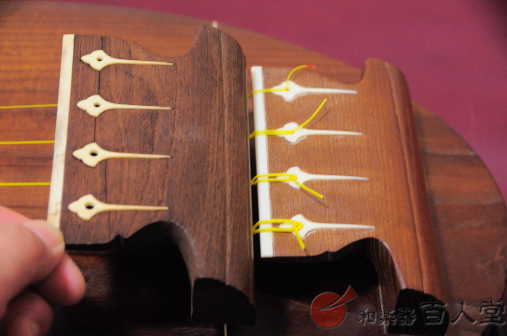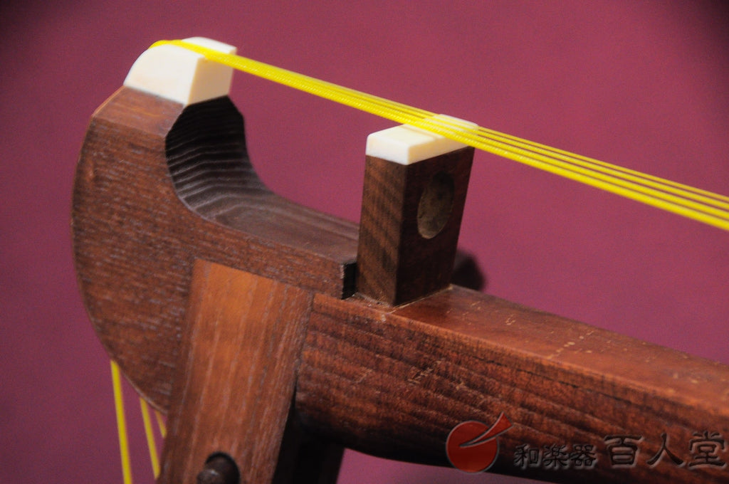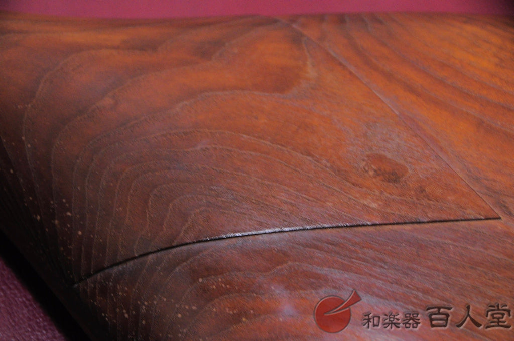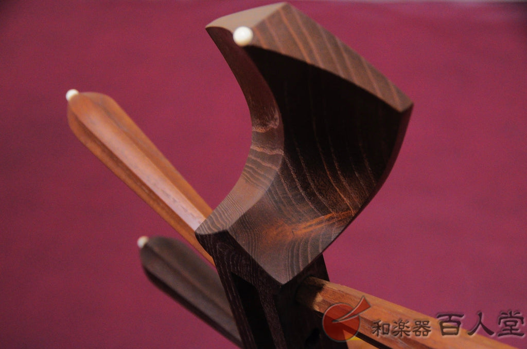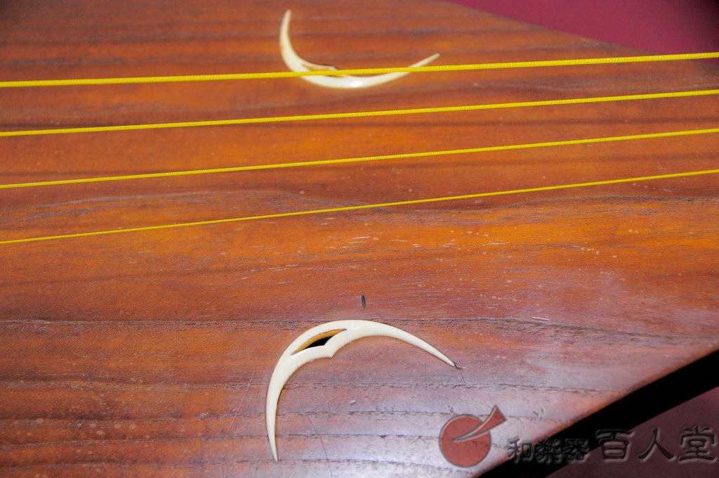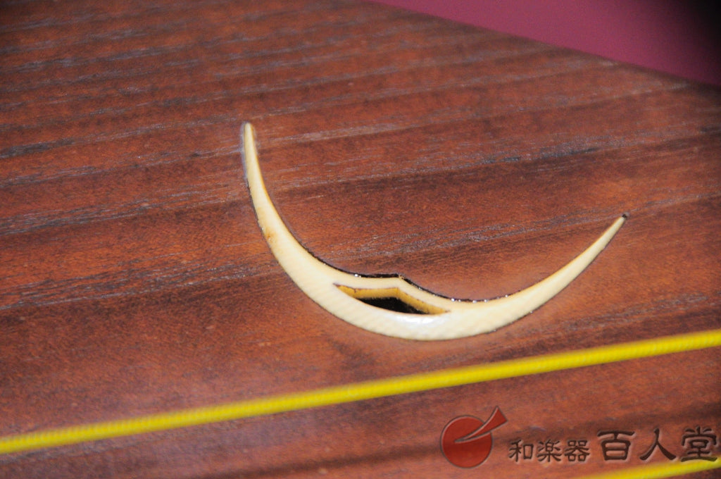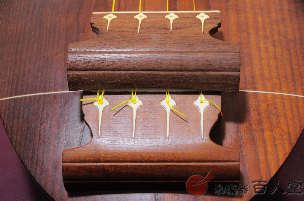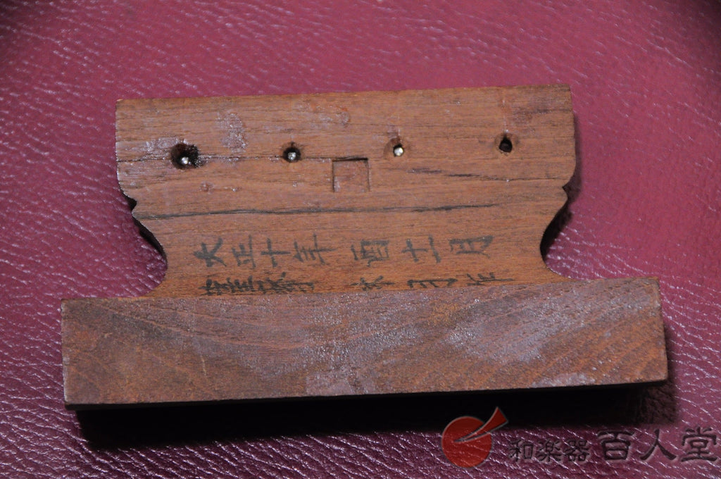 La mano que cubre, el jinin que enrolla y los dos rollos de hilo (dos de colores vivos) se basan en los originales,fielmente reproducidos y fabricados con madera vieja de morera de la prefectura de Kagoshima, de unos 100 años de antigüedad.La parte ebio del tengin faltaba antes de la restauración, pero el taller de biwa que trabajó en ella pudo restaurarla".La restauración se llevó a cabo tomando como referencia el biwa "Ringetsu", propiedad del Estudio Biwa, responsable de la restauración. Ajuste de la torsión del cuello,Se ajustó la torsión del cuello, la boca de marfil (procesada a partir de marfil de segunda mano), se sustituyó el toriguchi por bambú de hollín, se ajustó e instaló la altura del pilar dahoshi, se sustituyó el pilar y se ajustó el tacto,Media luna lado derecho pedido especial, todos los hilos reemplazados. (No hay garantía después de la compra, incluyendo la rotura del hilo. Por favor, comprenda esto de antemano).