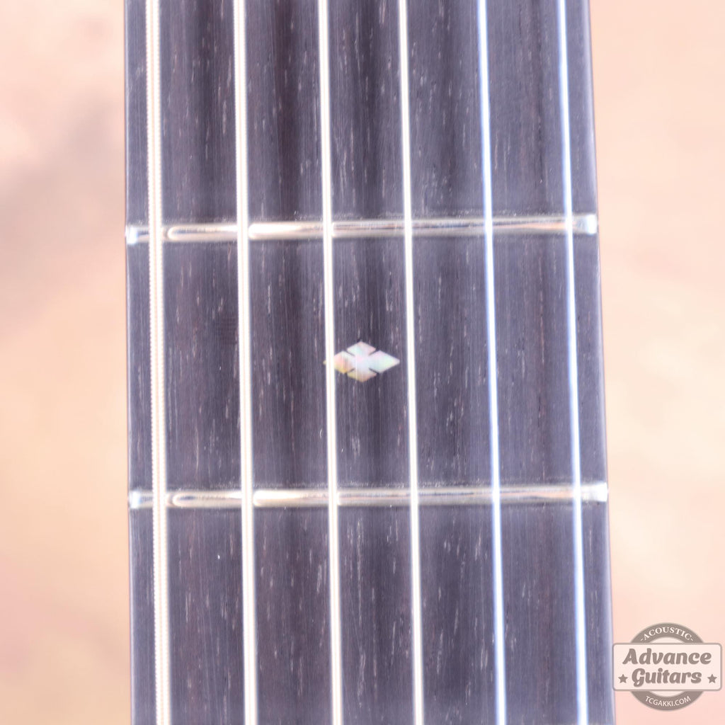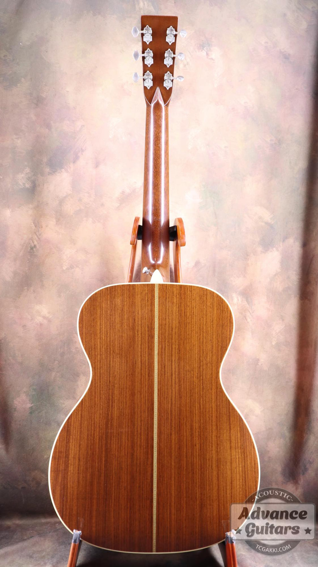 El uso de la espiga en la roseta sugiere un homenaje a los modelos 000-28 de los años 30 y 40.