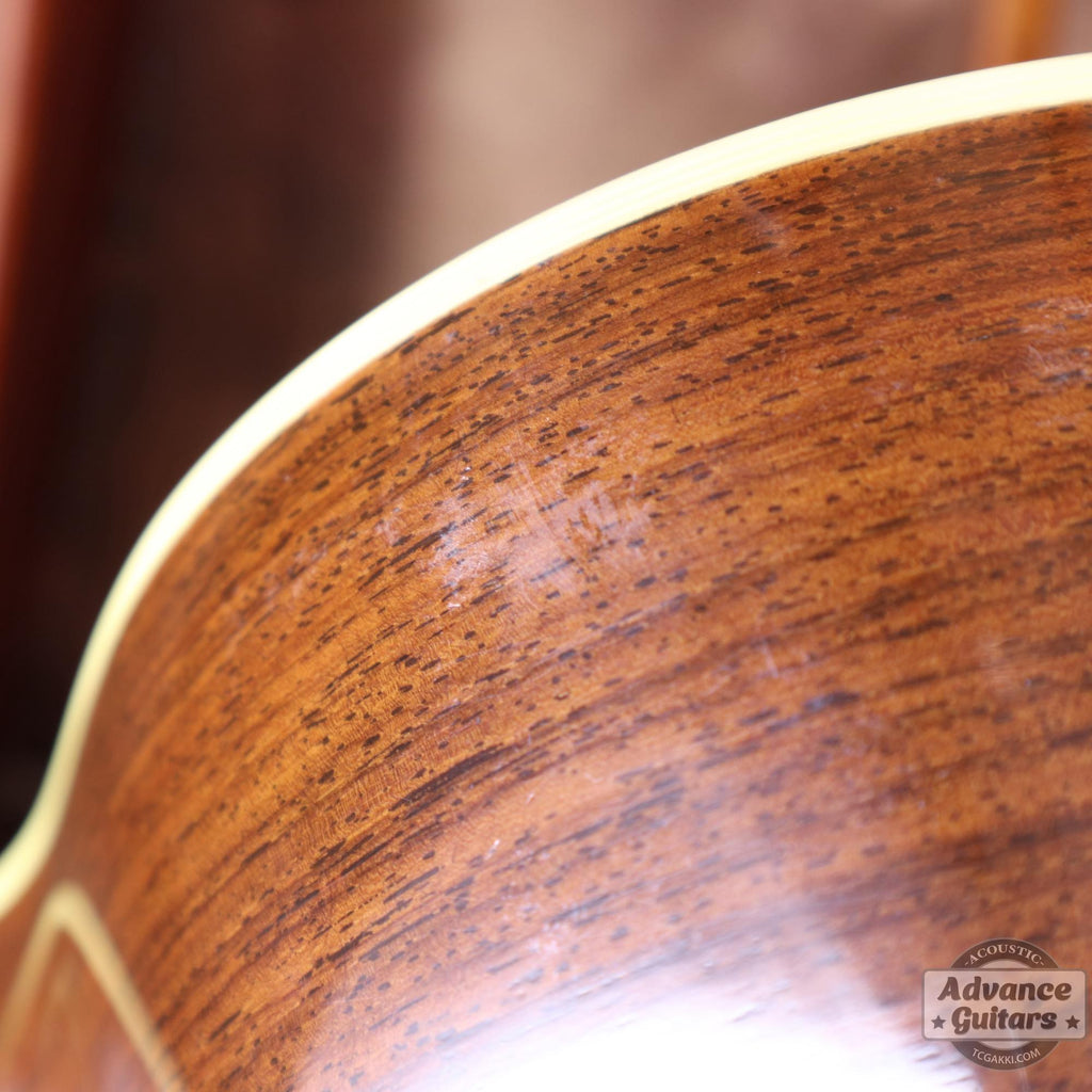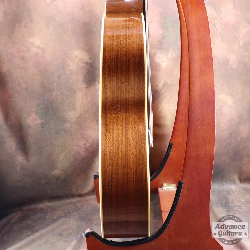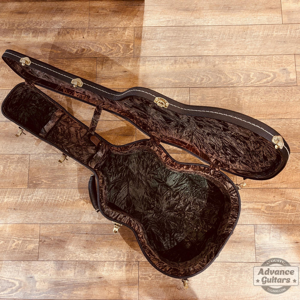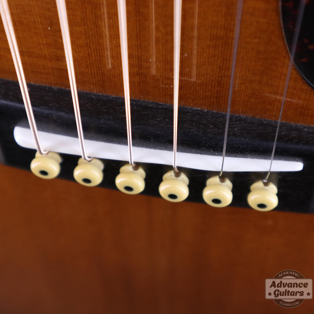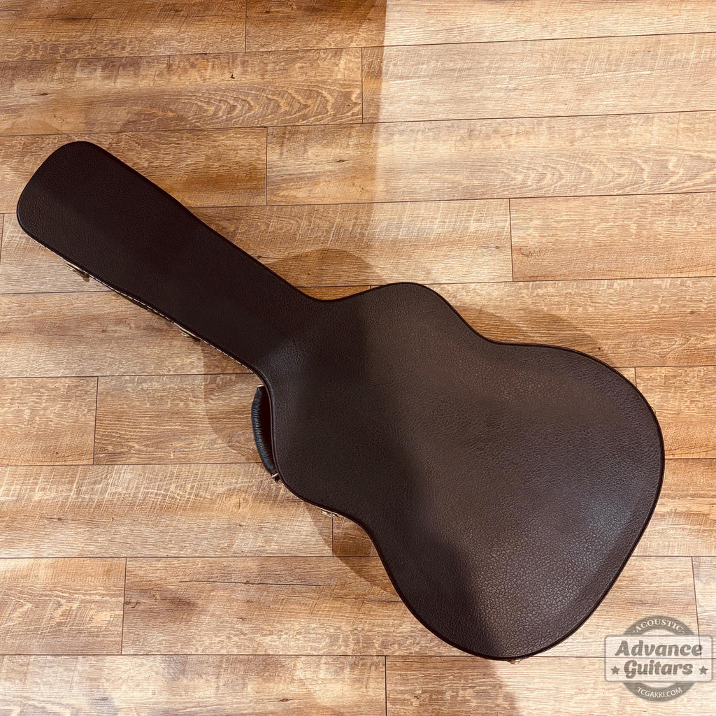 El cuerpo de tamaño 000 utiliza abeto, caracterizado por un acabado de color ámbar que evoca el aspecto de las guitarras vintage.