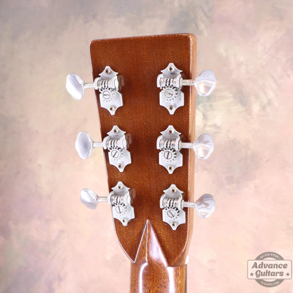 El clavijero de chapa de palisandro lleva la clásica calcomanía del logotipo de Martin, y su forma es angular, lo que recuerda a los años 30 y 40.