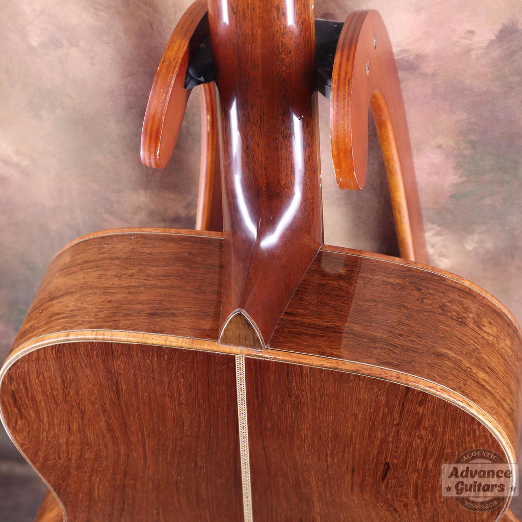 Los aros y el fondo son de palisandro de Madagascar, con su exótica y hermosa veta, adornados con ribetes de koa hawaiano a juego con la tapa.