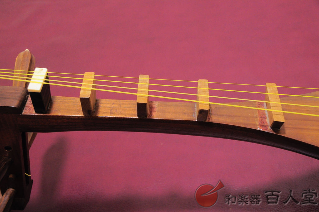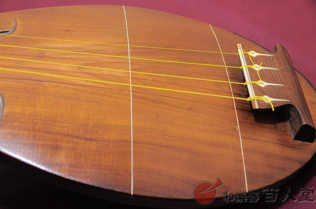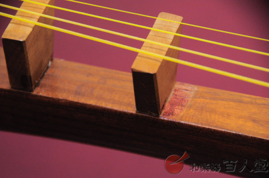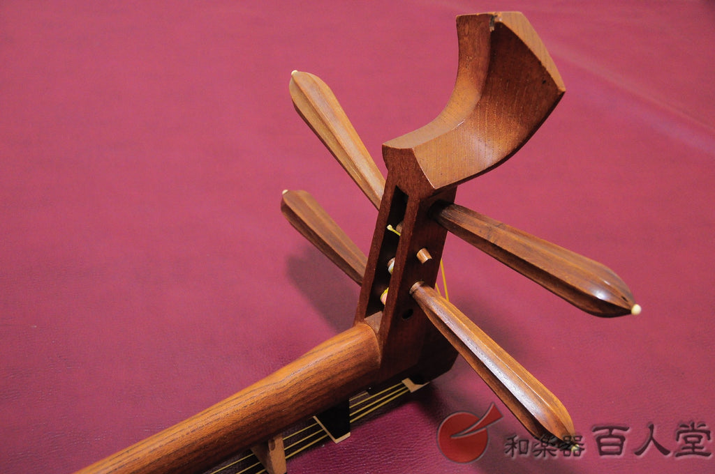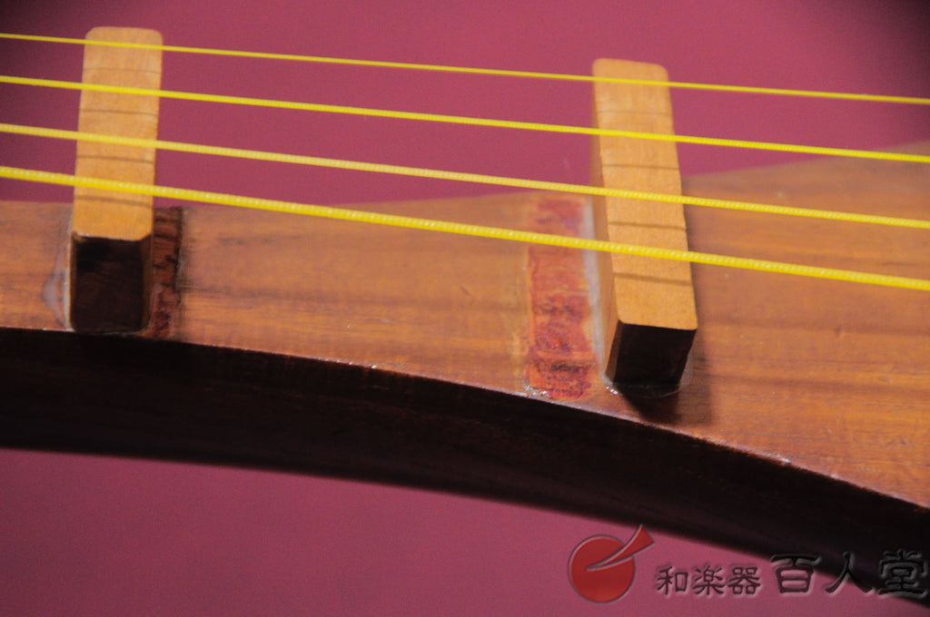 Satsuma-biwa de cuatro pilares modificada según las especificaciones nishiki-biwa añadiendo un pilar adicional entre los pilares superior e inferior.