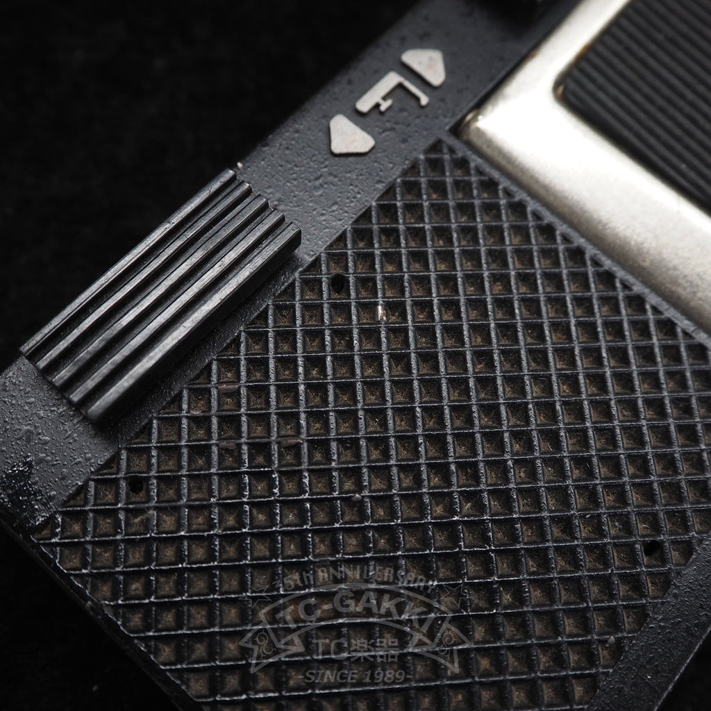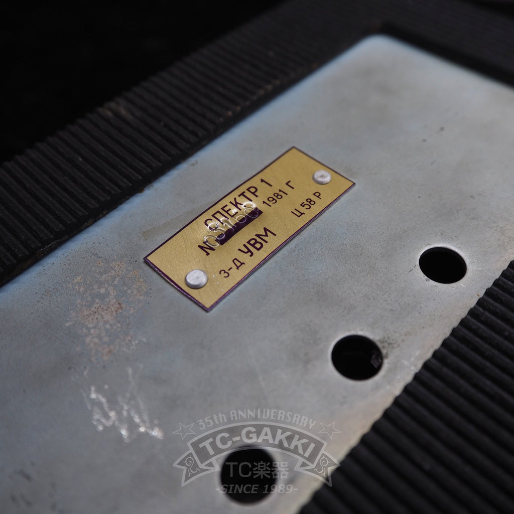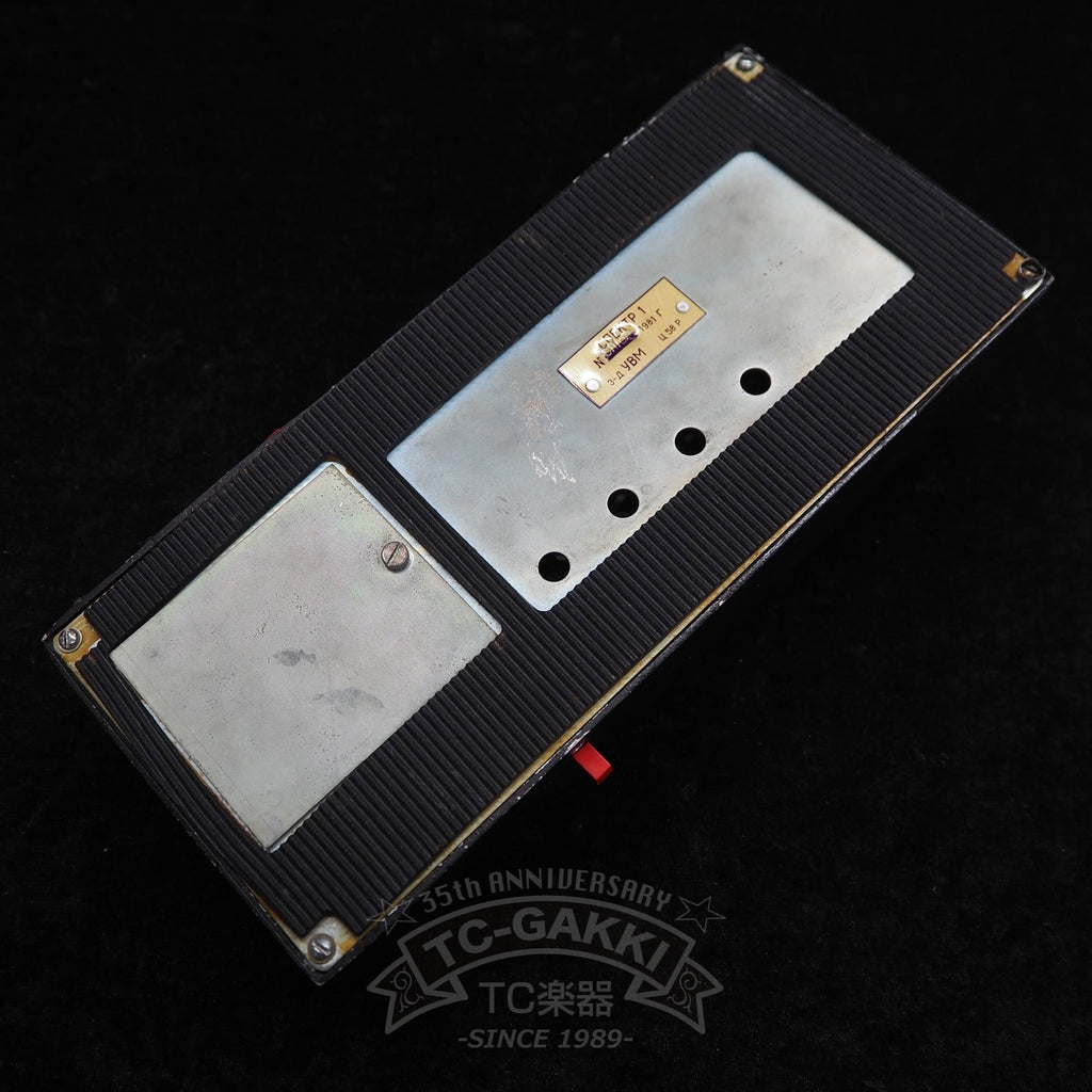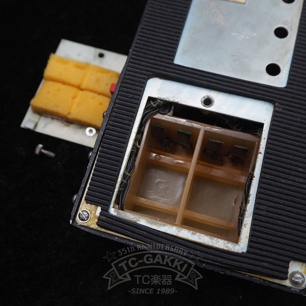 Il s'agit d'une pédale fuzz-wah Spektr-1 de l'ère soviétique. La pédale attire immédiatement le regard. Elle contrôle la wah-wah et son fonctionnement est inverse de celui d'une pédale standard. Le commutateur vertical à gauche contrôle la tonalité de la fuzz (en haut) et son activation/désactivation (en bas). Il est déverrouillable. (Autrement dit, pour jouer en wah-wah, il faut appuyer sur le commutateur de fuzz avec le talon tout en appuyant sur la pédale wah.) La pédale wah peut être verrouillée en position haute en faisant glisser la partie marron vers la droite lorsque la pédale est en position haute. Le côté gauche est équipé d'un puissant commutateur de trémolo (vibrato). Les prises à droite sont, de gauche à droite, une prise d'alimentation CC, une prise de sortie, une prise d'entrée et un coupe-circuit. (Réglé sur ON pour un fonctionnement sur batterie ; réglé sur OFF pour un fonctionnement sur alimentation.) Lorsque vous utilisez une fuzz-wah, elle produit un rugissement assourdissant, rappelant une fuzz-wah fOXX ! Elle fonctionne avec deux piles 9 V, mais ne vous inquiétez pas, elle peut également être utilisée avec une alimentation 9 V CC classique. Pour être honnête, les câbles spéciaux peuvent être un peu délicats à utiliser, et ce n'est pas parfait à tous points de vue, mais les amateurs de pédales l'apprécieront, et je pense que c'est un modèle qui évoque l'atmosphère romantique de quelque chose qui existait dans l'histoire.