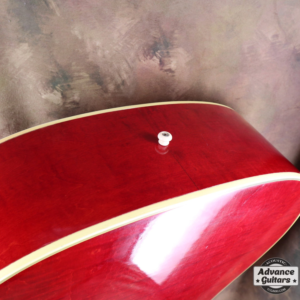 Qu'en pensez-vous ? Les Hummingbird en érable sont également des modèles rares que l'on ne trouve que dans les années 62-63. On peut voir quelques petites marques et rayures, mais à part cela, c'est un instrument en très bon état qui a conservé sa belle couleur cerise malgré ses plus de 60 ans. Si vous êtes intéressé, n'hésitez pas à l'essayer !