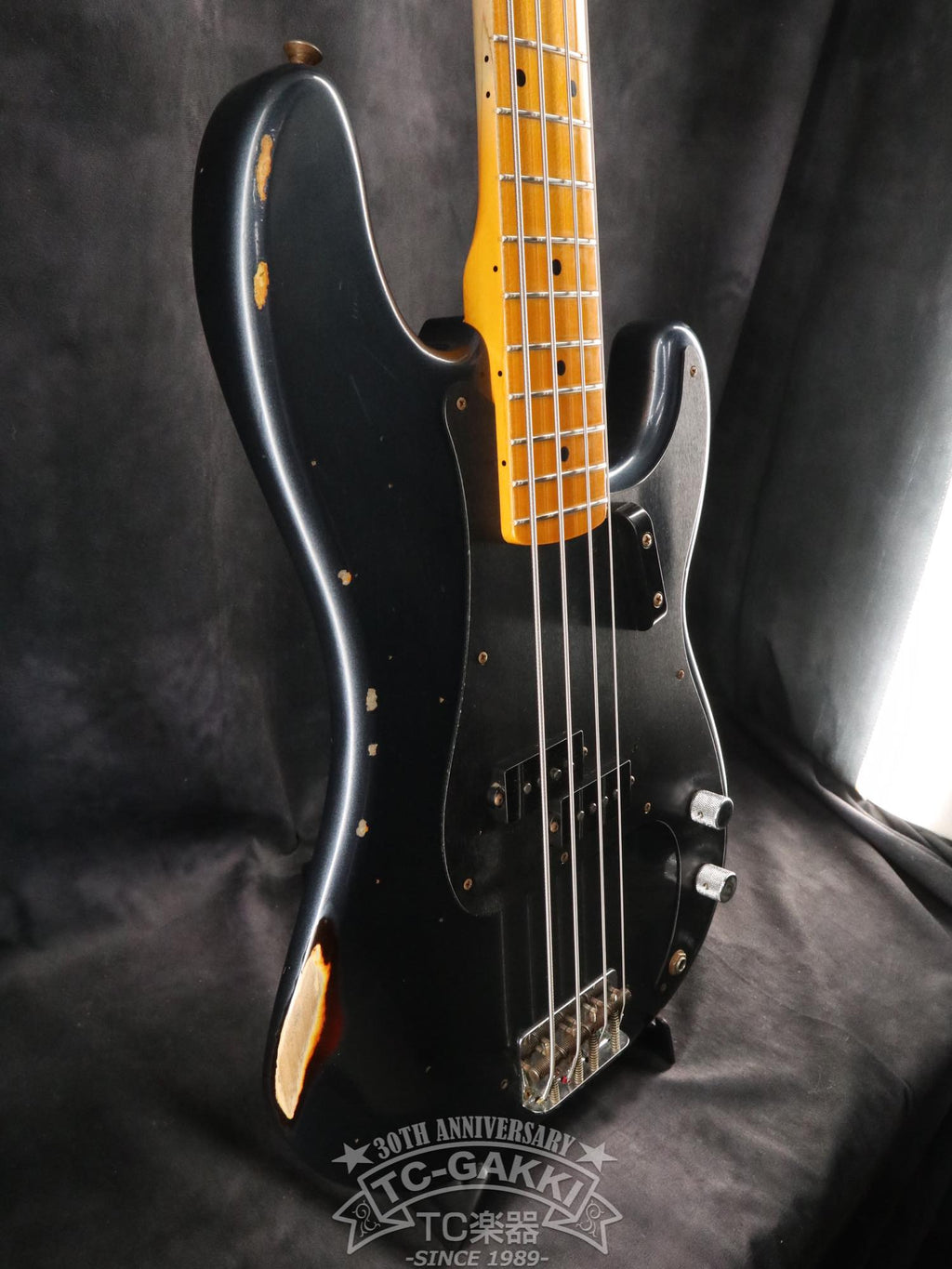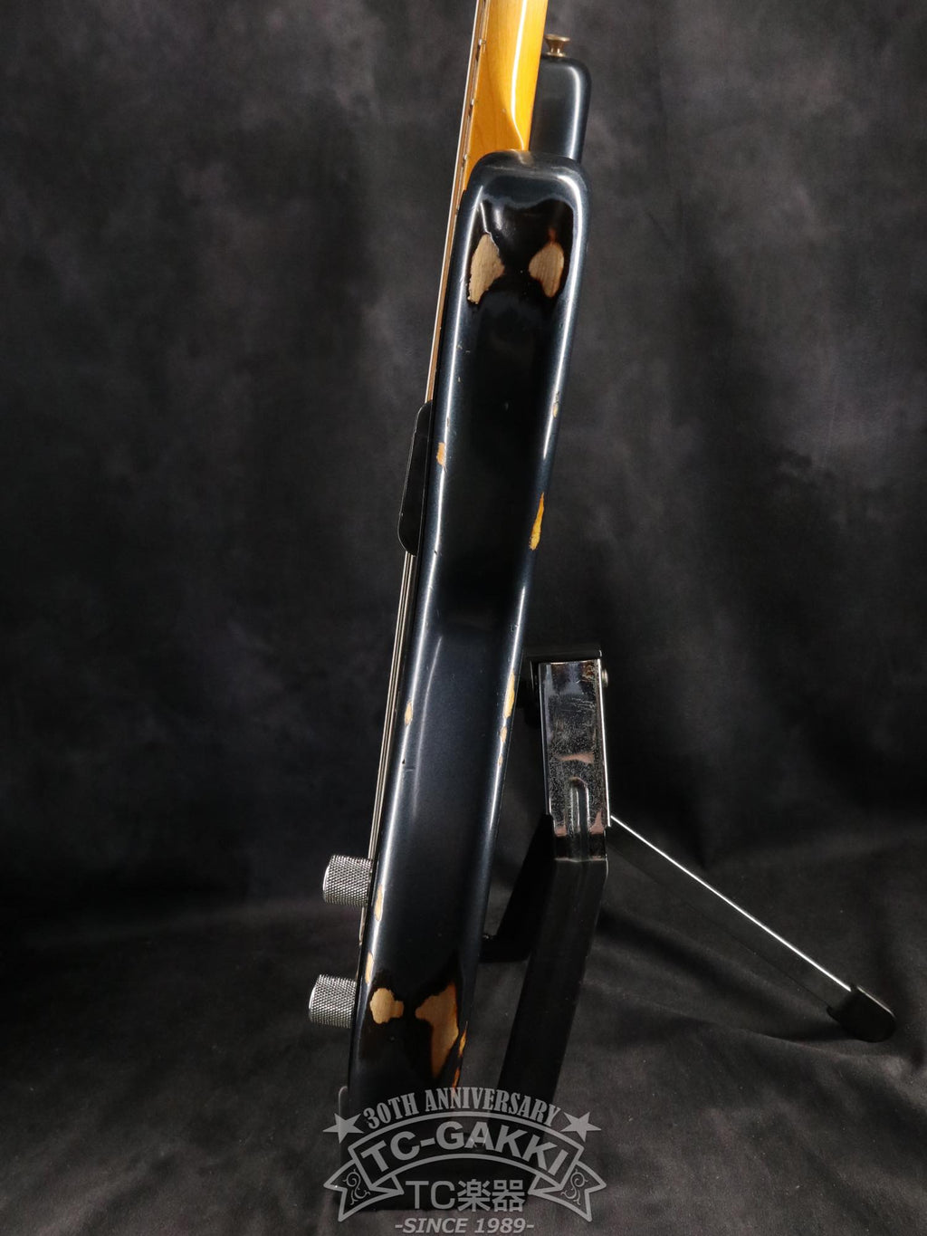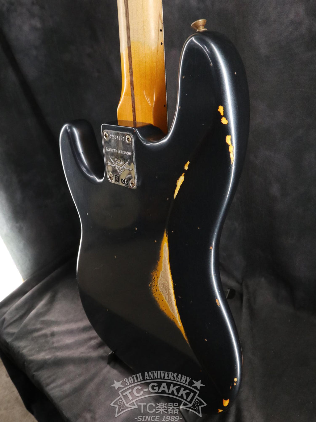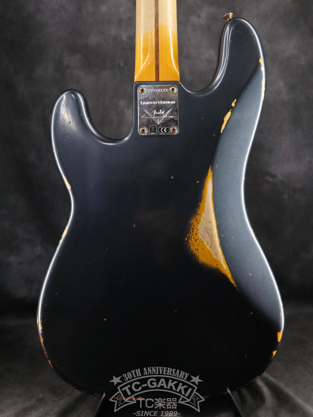 Elle est recouverte d'une finition multicouche Dark Lake Placid Blue. La couche de base est recouverte d'un sunburst à trois tons. Associé à une plaque de protection anodisée noire, il dégage une impression de modernité, tandis que le sunburst qui apparaît par endroits grâce au traitement relic lui confère un aspect vintage, lui donnant un look unique propre aux Custom Shop.