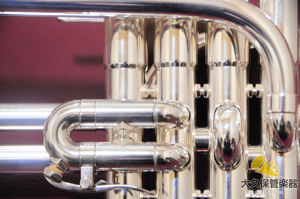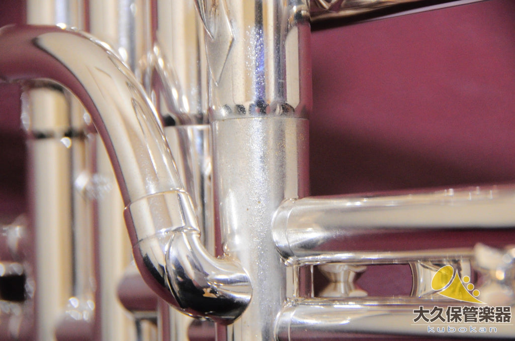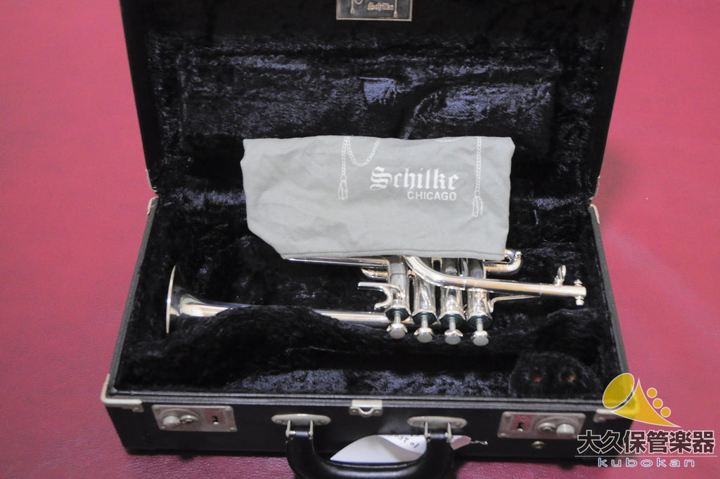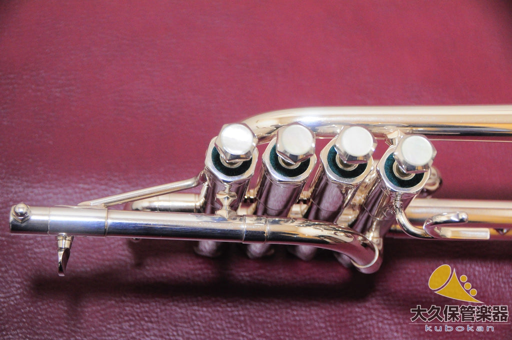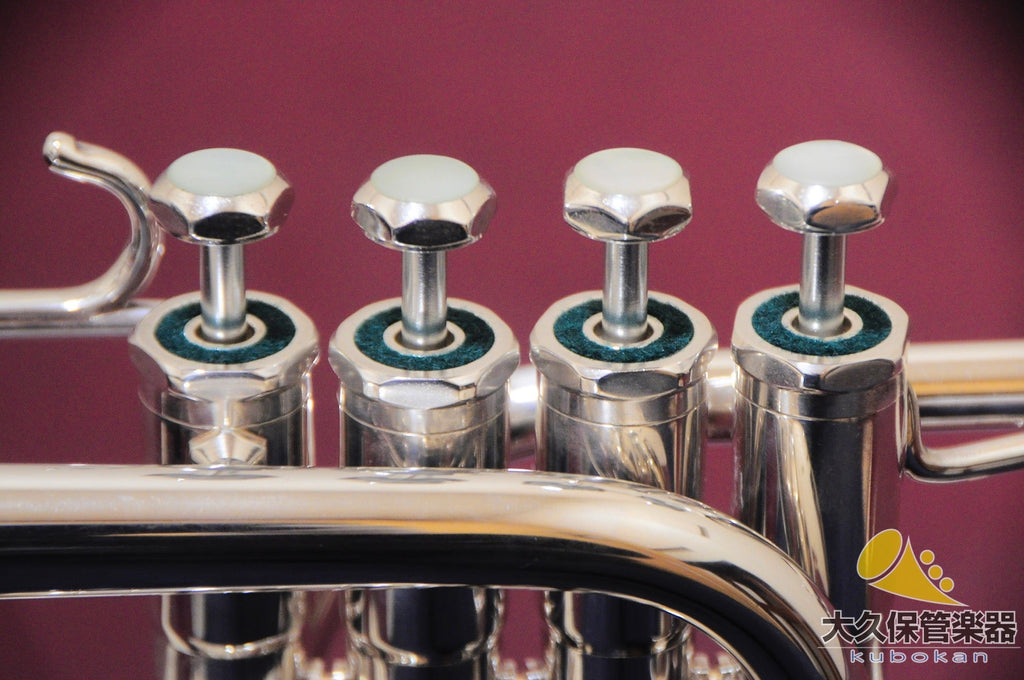 Silky Piccolo Trompette modèle P5-4. Cuivre de 4 pouces (101,6 mm). Perce de 450 pouces (11,42 mm). Finition argentée. Tube en B♭ et A avec embouchure de cornet (※). Poids de l'instrument : 915 grammes. Fabriqué en 1999.Accessoires : étui rigide d'origine. Prix neuf : 946 000 yens.