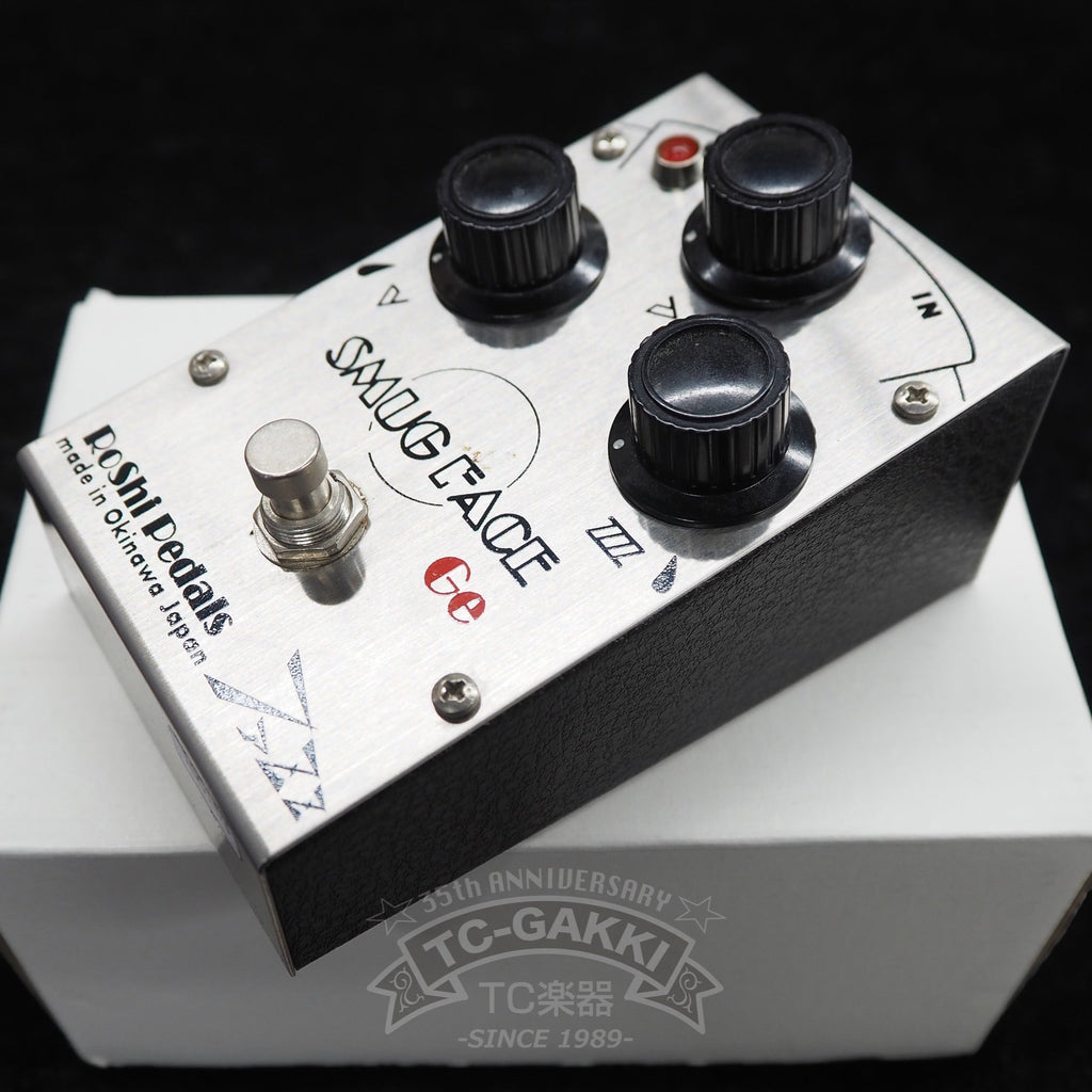 L'utilisation de transistors au germanium entraîne inévitablement des variations sonores. Le SMUG FACE Ge présente également des différences sonores d'un modèle à l'autre. Il existe des variations lorsque le gain est élevé ou lorsque le volume de la guitare est réduit. Cependant, chaque unité est testée et réglée individuellement lors de l'assemblage. Aucun modèle ne présente de défauts tels que des coupures ou un manque de sustain. Chaque unité offre un son exceptionnel.