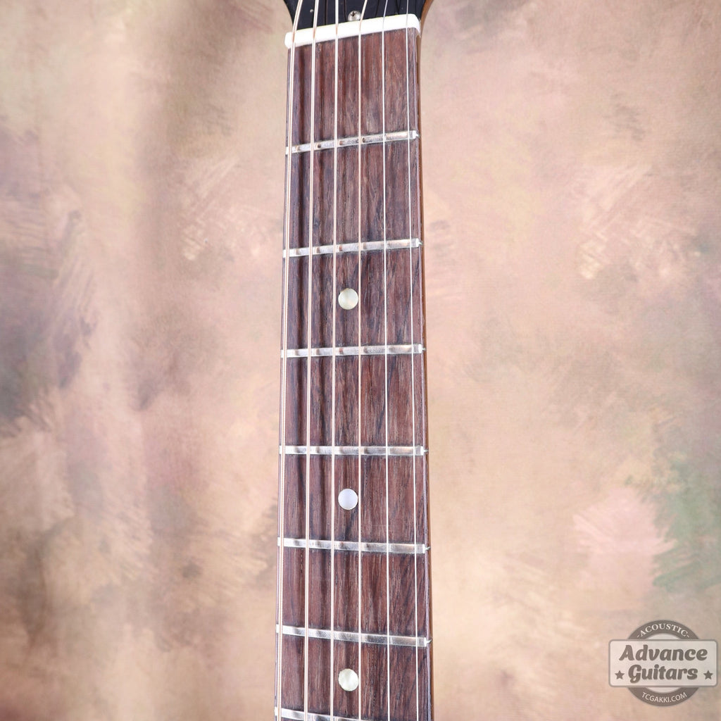 지판에는 로즈우드를 사용하며, 레귤러 넥이라 불리는 너트 폭은 약 42mm입니다.
