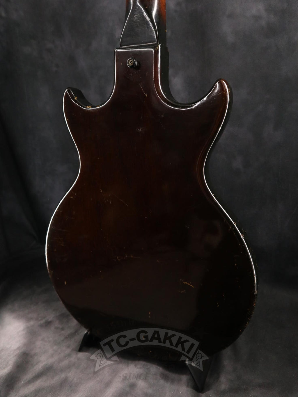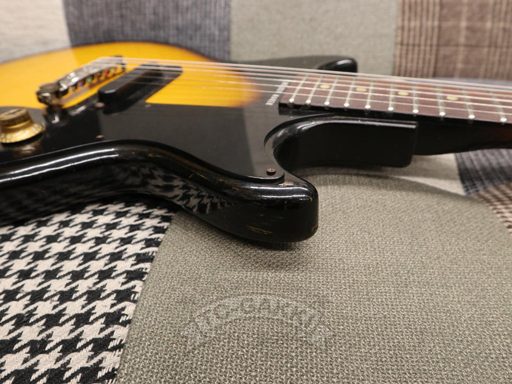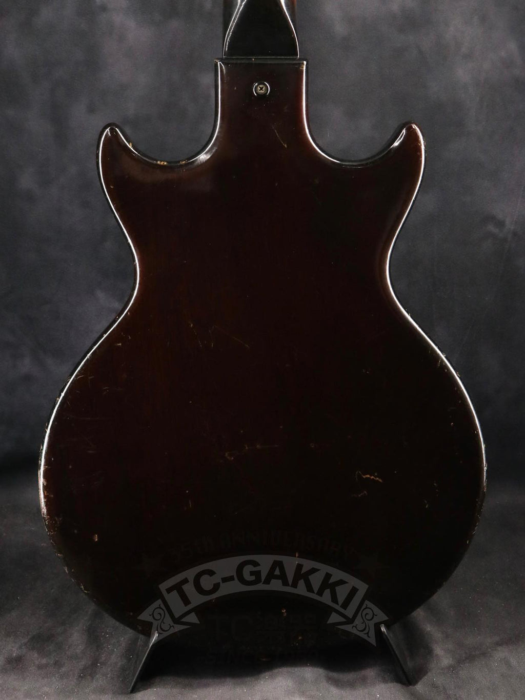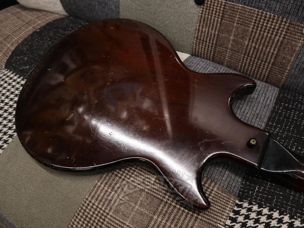 【SPEC.】 바디: 마호가니 더블 컷어웨이 넥: 마호가니 22프렛 (16프렛 조인트) 핑거보드: 브라질 로즈우드 픽업: 멜로디 메이커 싱글 코일 x1 너트 너비: 43mm 스케일: 24.75” 무게: 2.74kg 소프트 케이스 포함 ※프렛, 너트, 페그 교체됨 ※넥 조인트 부분에 목재 결손 있음