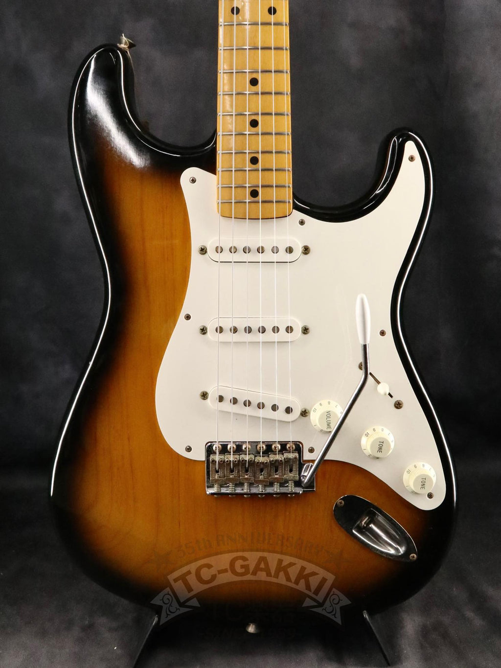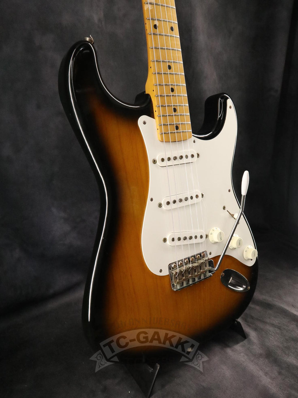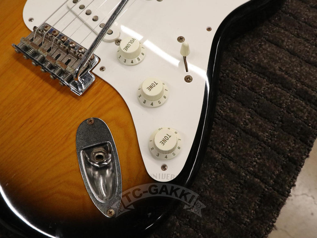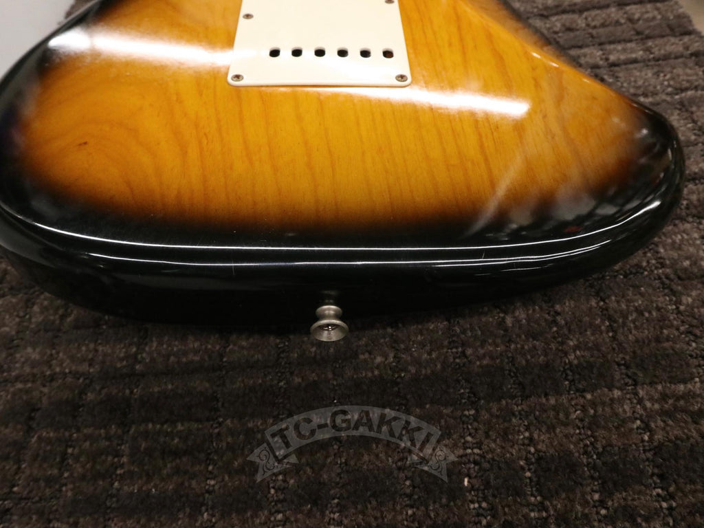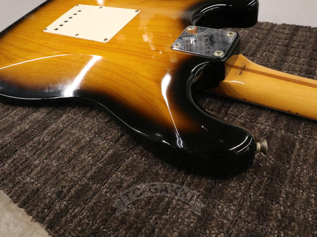 1993-1994년제 Fender Japan ST54-75RV 커스텀 에디션 상급 모델. 1982년, 본사로부터도 높은 평가를 받으며 출범한 펜더 재팬. 그 설립을 뒷받침한 것은 그레코의 슈퍼 리얼 시리즈를 담당했던 후지현악기제조, 현재의 후지겐 정예 팀이었습니다. 저비용이면서도 본사에 버금가는 완성도는 당시 세계 시장마저 놀라게 했습니다. 본 기기는 스트라토캐스터의 원점인 54년 사양을 철저히 재현했습니다. 두꺼운 하드 V 셰이프 메이플 넥은 좋은 의미로 일본제답지 않은 당당한 그립감을 지녀 플레이어에게 확실한 손맛을 선사합니다. 더불어 라이트웨이트 애쉬 특유의 나뭇결은 어딘가 이국적인 표정을 엿보게 하여 시각적으로도 소유욕을 충족시켜 줍니다.