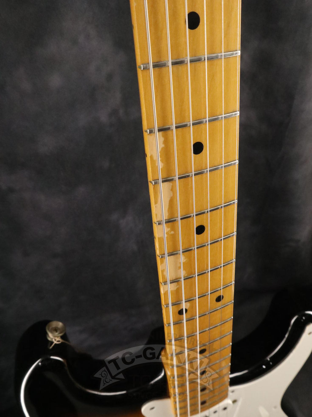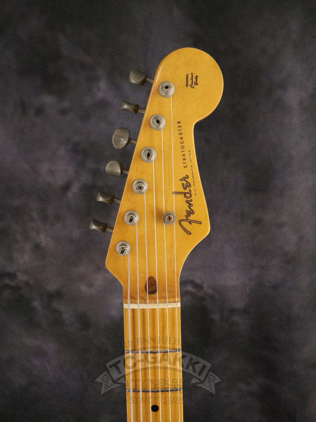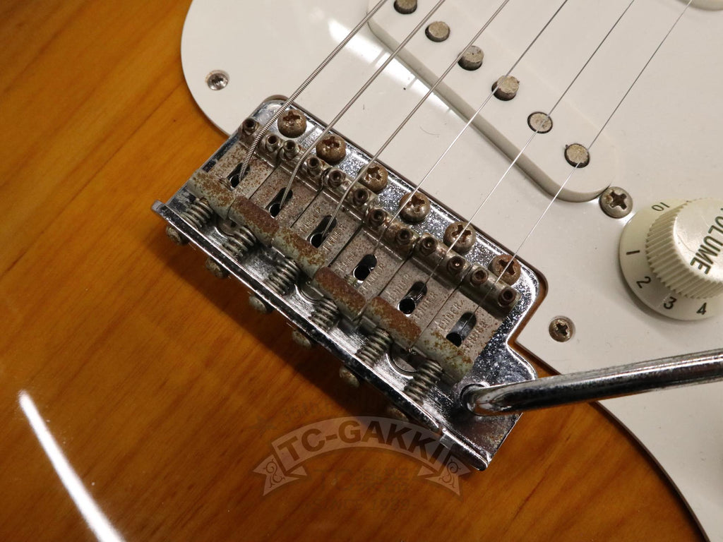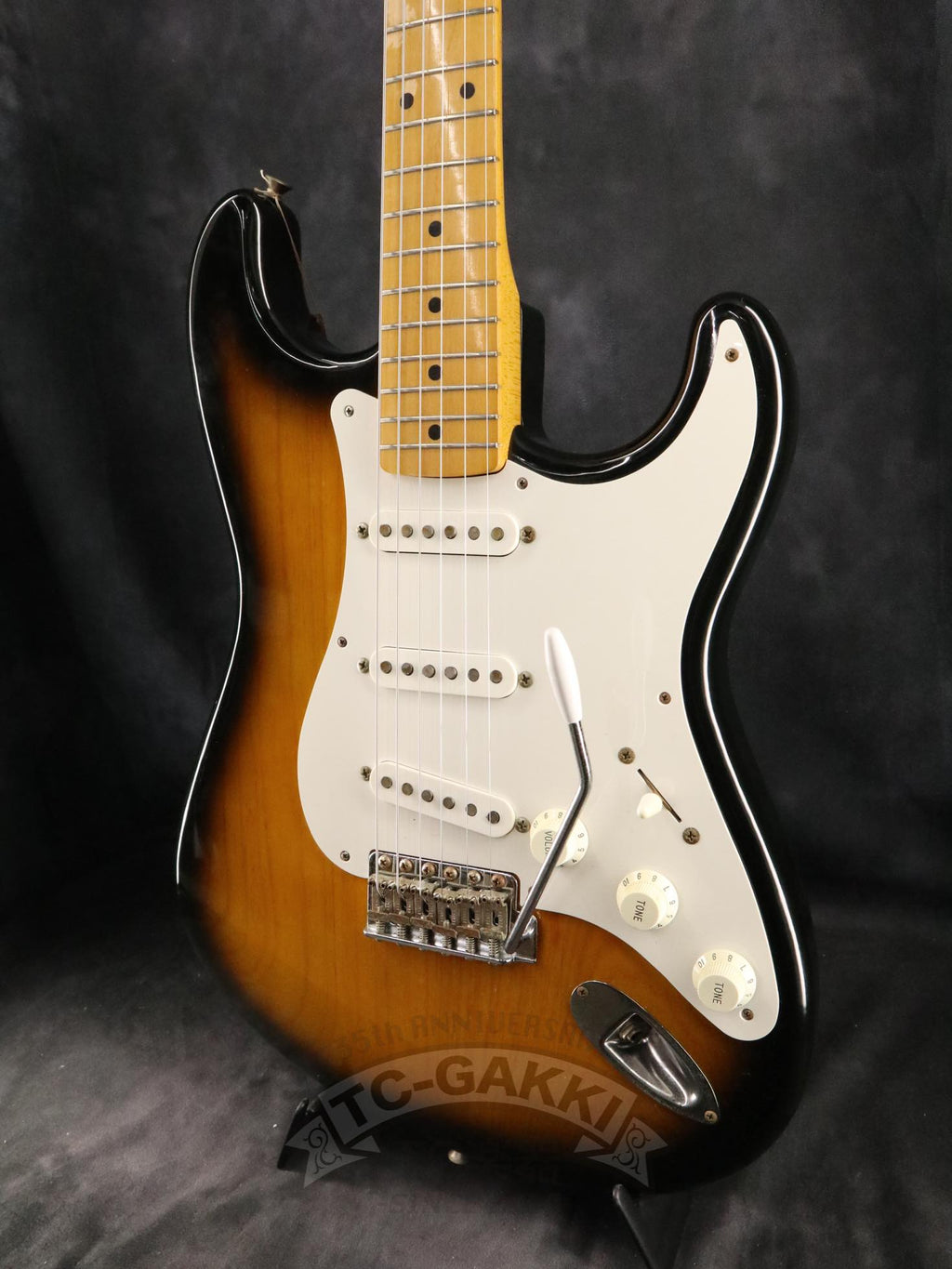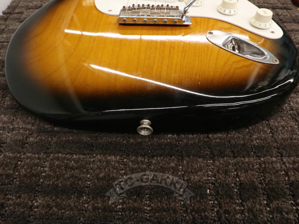 1993-1994년제 Fender Japan ST54-75RV 커스텀 에디션 상급 모델. 1982년, 본사로부터도 높은 평가를 받으며 출범한 펜더 재팬. 그 설립을 뒷받침한 것은 그레코의 슈퍼 리얼 시리즈를 담당했던 후지현악기제조, 현재의 후지겐 정예 팀이었습니다. 저비용이면서도 본사에 버금가는 완성도는 당시 세계 시장마저 놀라게 했습니다. 본 기기는 스트라토캐스터의 원점인 54년 사양을 철저히 재현했습니다. 두꺼운 하드 V 셰이프 메이플 넥은 좋은 의미로 일본제답지 않은 당당한 그립감을 지녀 플레이어에게 확실한 손맛을 선사합니다. 더불어 라이트웨이트 애쉬 특유의 나뭇결은 어딘가 이국적인 표정을 엿보게 하여 시각적으로도 소유욕을 충족시켜 줍니다.