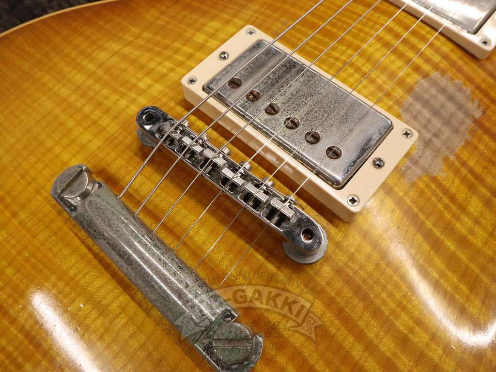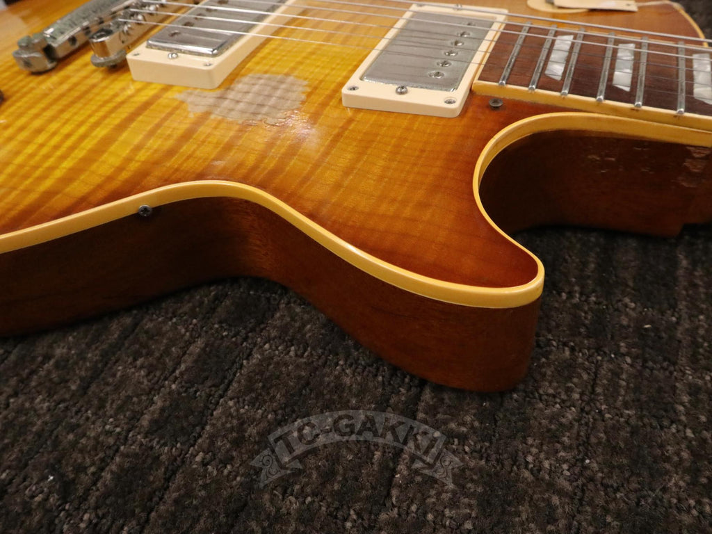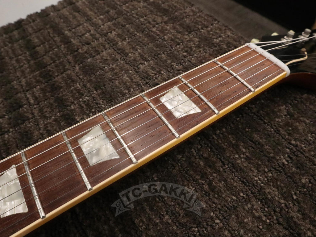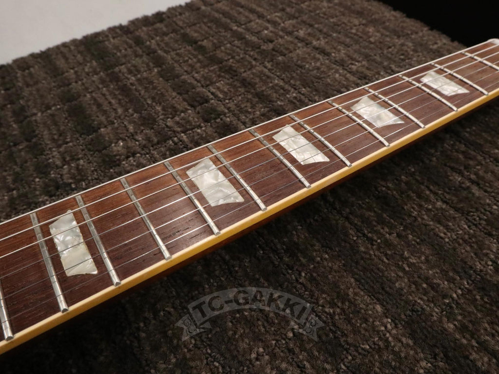 1986년 1월 15일, Gibson은 헨리 자스코비츠 등이 이끄는 새로운 체제로 전환하며 히스토릭 컬렉션이라는 프로그램을 시작했습니다. 당시 이 시리즈는 레스폴 리이슈의 최고봉으로 자리매김했습니다.본 기기는 2000년 제작된 1959 Les Paul Standard Reissue입니다. 깊이 꿈틀거리는 듯한 플레임 메이플 탑은 각도에 따라 표정을 바꾸며, 요염한 광채로 보는 이의 시선을 사로잡습니다. 스테이지 라이트 아래에서도, 집안의 부드러운 조명 속에서도 그 존재감은 특별합니다. 픽업에는 57 클래식을 탑재했습니다. 출력 자체는 지나치게 강하지는 않지만, 충분한 중심 두께를 지니고 있어 섬세한 터치 차이를 세심하게 표현합니다. 클린에서는 윤기 있게, 드라이브 시에는 왕도의 끈적임 있는 레스폴 사운드를 연주합니다. 시간과 비용을 아끼지 않고 제작된 히스토릭기 특유의 퀄리티. 소재, 울림, 존재감, 모든 것이 높은 수준으로 완성되었습니다.