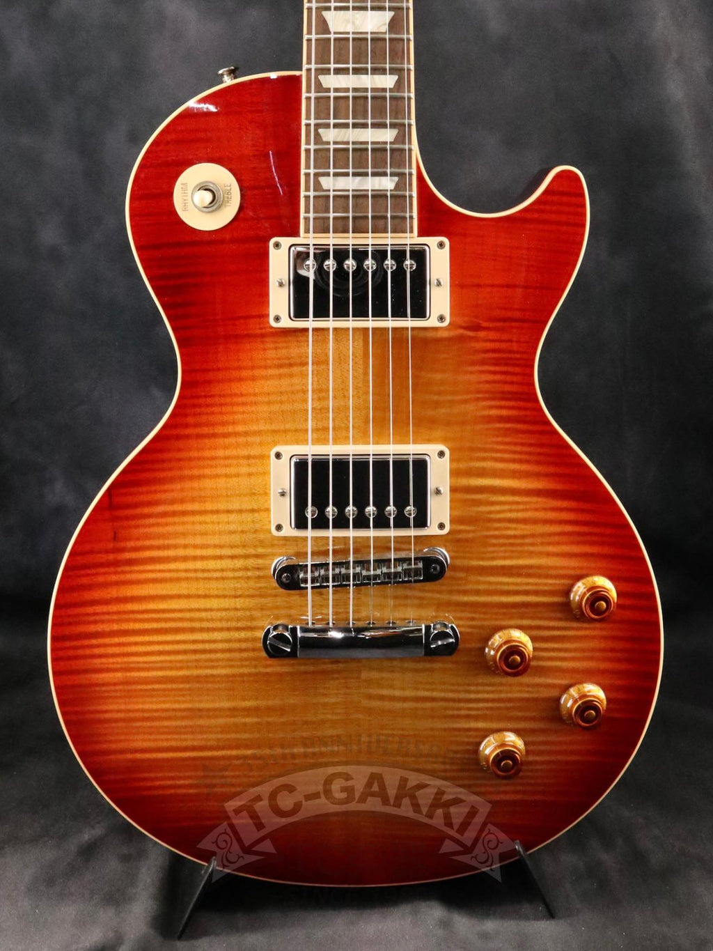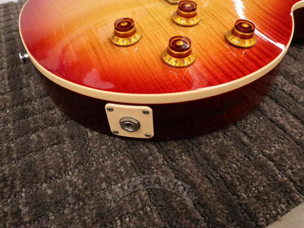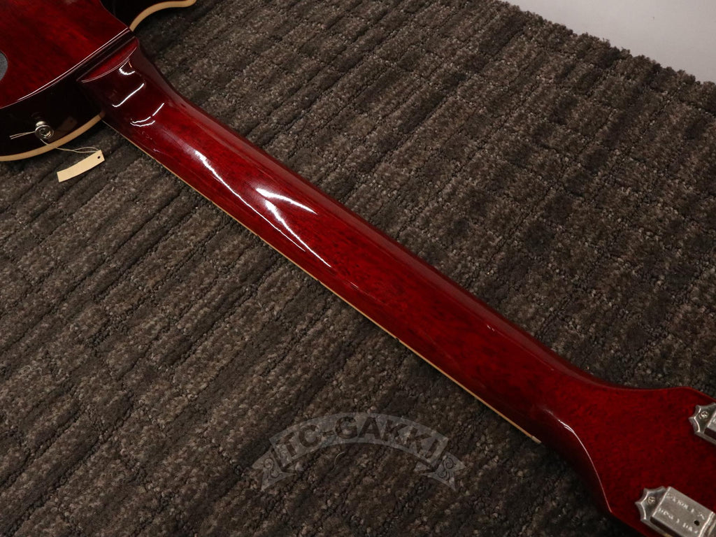 이 2014년 제작 Les Paul Traditional 120th Anniversary는 전통적인 사양을 중심으로 아름다운 플레임 메이플 탑을 채택한 모델입니다. 각도에 따라 깊게 나무결이 흔들리는 탑은 조명 아래에서 더욱 인상적인 표정을 보여줍니다. 넥은 60년대 스타일의 얇은 마호가니 넥을 채택해 잡기 쉽고 편안한 연주성을 실현했습니다. 픽업에는 57 Classic과 57 Classic Plus를 탑재했습니다. 1957년제 오리지널 PAF를 재현한 설계로, 코일 턴 수를 줄이면서도 충분한 파워와 터치에 순순히 반응하는 뉘앙스를 갖추고 있습니다.클린에서는 달콤하게, 드라이브에서는 끈적임이 느껴지는 정통 레스폴 사운드를 즐길 수 있습니다. 크루슨 스타일의 싱글라인 페그 등 디테일도 빈티지 라이크하게 마무리되어 전체적으로 차분한 분위기를 자아냅니다.