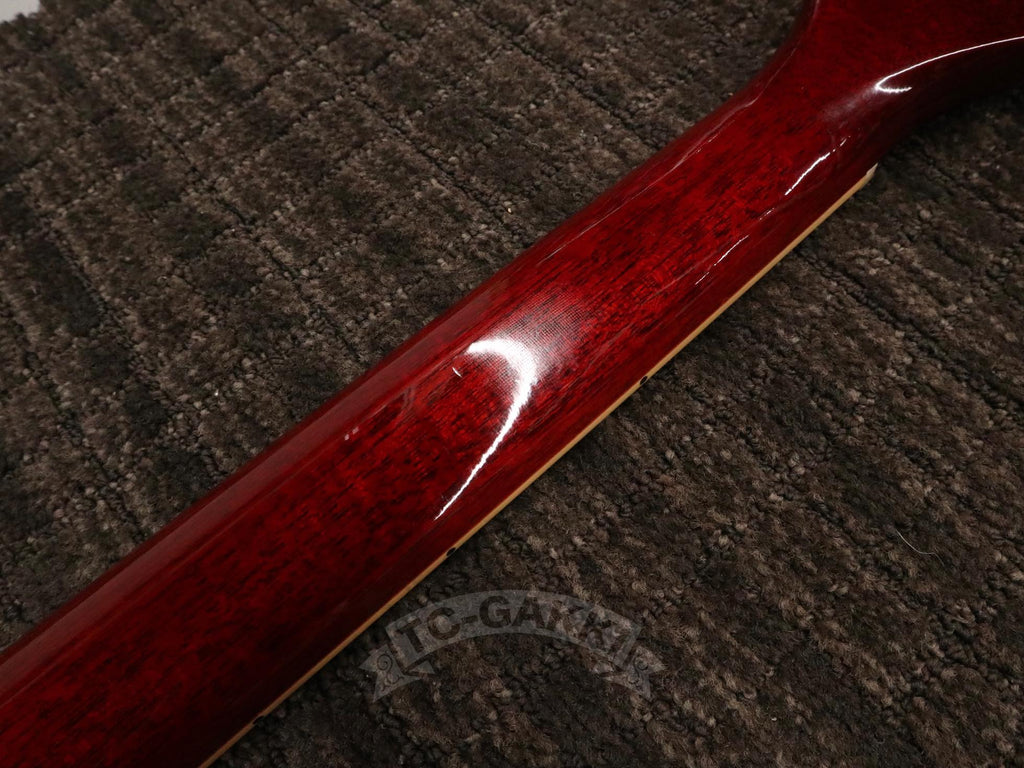 플레임 메이플 탑이라 해도 그 표정은 다양합니다. 빛의 방향이나 각도에 따라 입체적으로 나뭇결이 움직이는 개체는 한정되어 있습니다. 게다가 외관뿐만 아니라 사운드와의 균형도 중요합니다. 모던하게 치우칠 것인가, 어디까지나 빈티지 라이크하게 정리할 것인가. 그 방향성에 따라 악기의 인상은 크게 달라집니다.