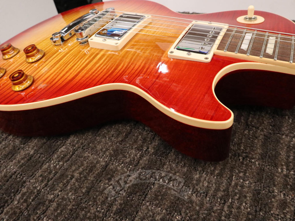 스포트라이트 아래에서 빛나는 플레임 탑과 안정감 있는 레스폴 사운드. 그 존재감과 울림을 직접 확인해 보십시오.