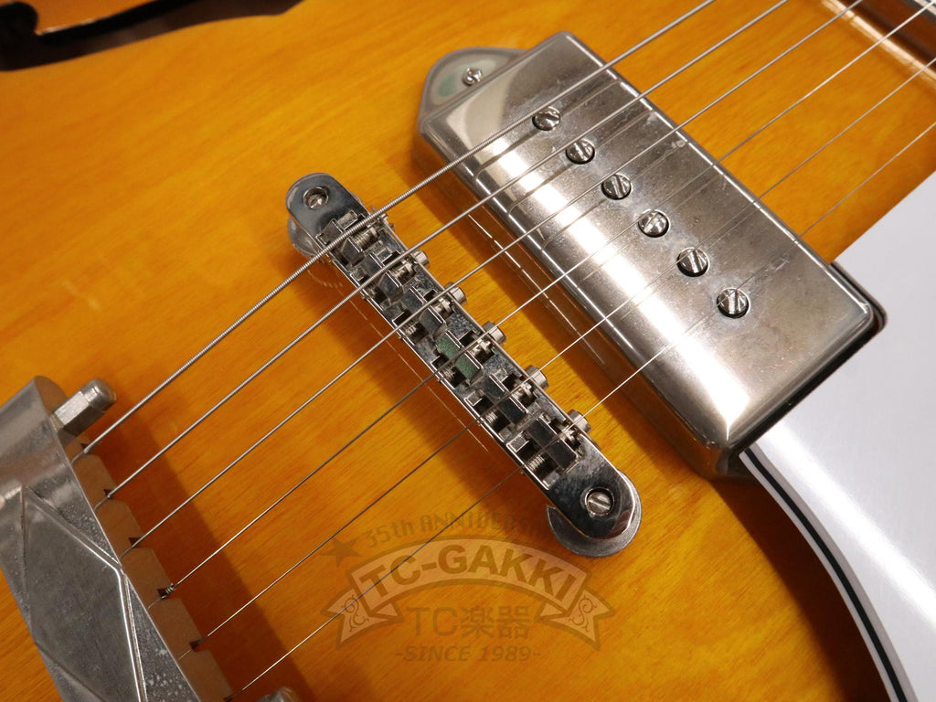 픽업에는 P-90을 탑재했습니다. 싱글 코일 특유의 선명함과 고음역의 명료함을 유지하면서도 코일 턴 수를 늘려 중심감 있는 따뜻함과 두께를 동시에 구현했습니다. 클린 톤에서는 공기감 넘치는 코드를, 살짝 디스토션을 걸면 따뜻한 리드 톤을 연주합니다. 앰프를 거치지 않아도 느껴지는 생생한 공명음의 우수함 또한 이 모델만의 특징입니다.