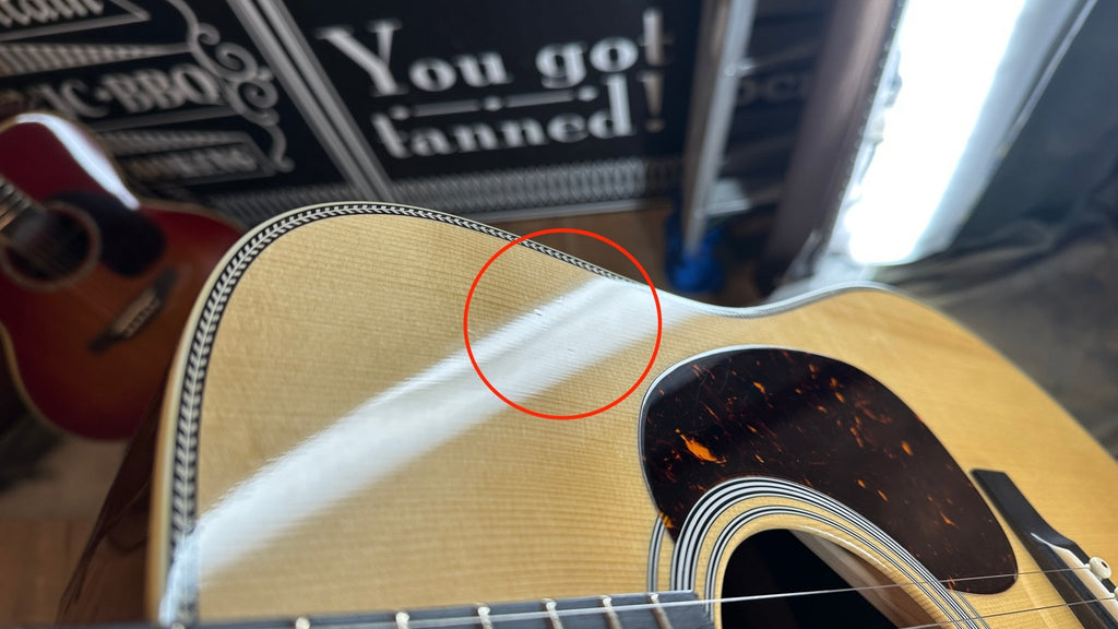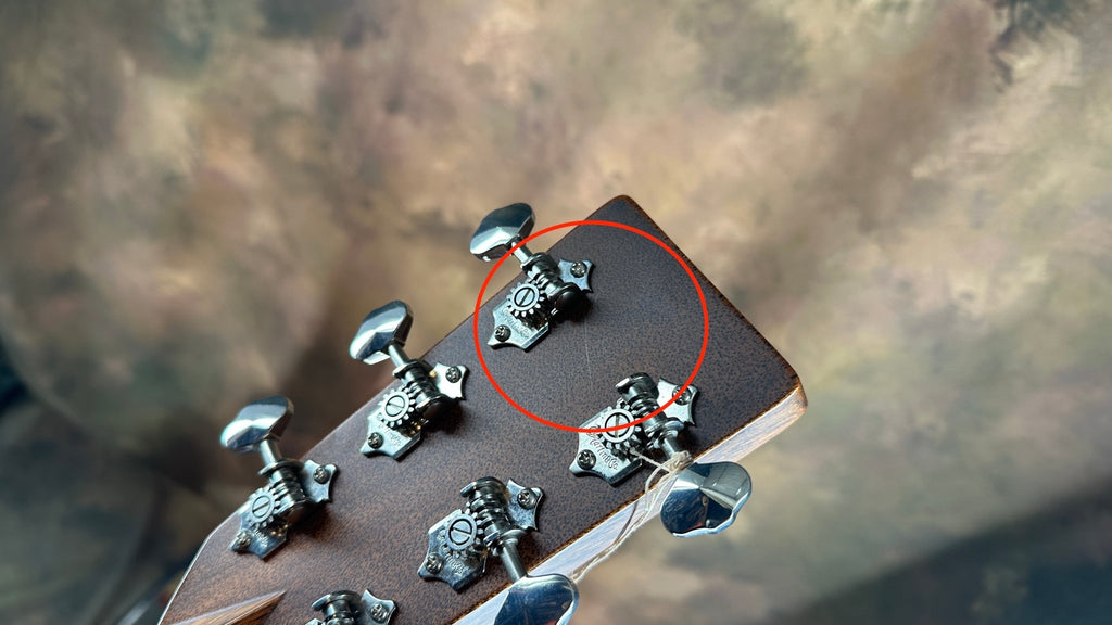 D-28은 블랙과 화이트의 멀티컬러 퍼플링을 채택하지만, 본 기기에는 헤링본을 채택했습니다. 주문 제작만의 특별한 사양입니다.