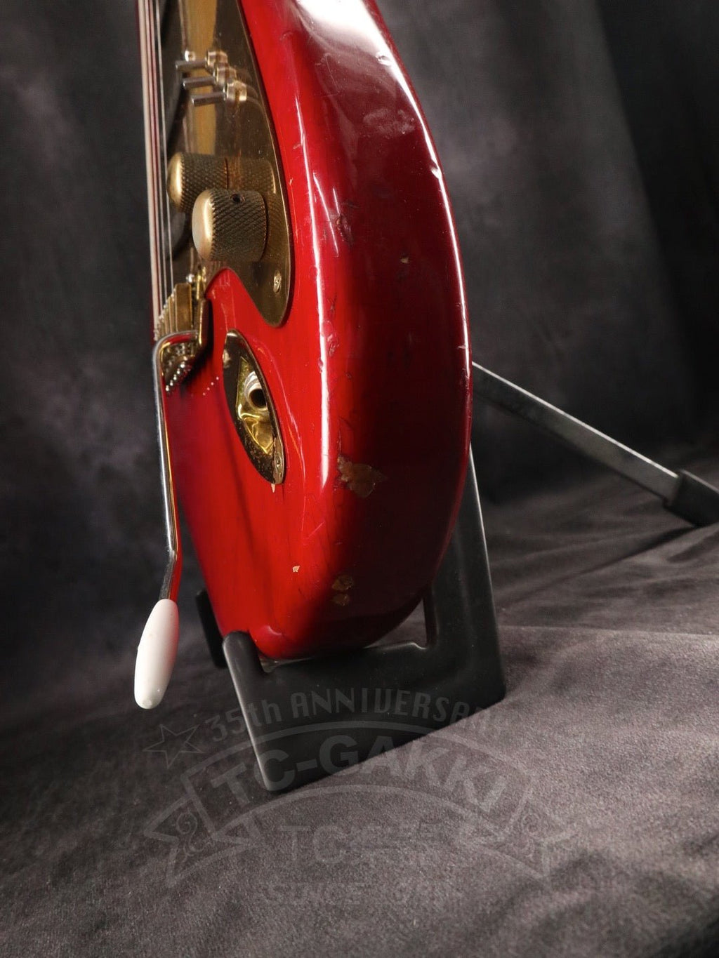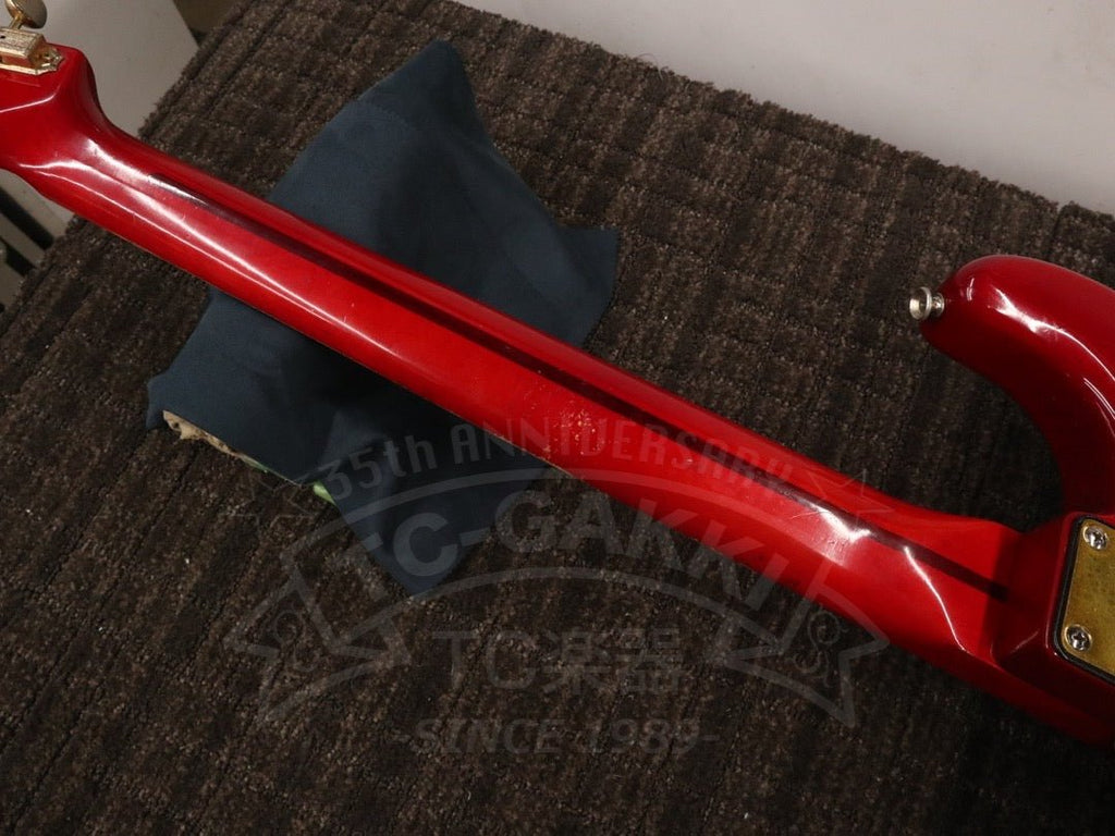 Africaなど名曲が収録されている「TOTO IV」の裏ジャケットでLukatherが持っているオール・レッドカラーに金色のピックガードが搭載された個性的なST-Type。 当時はSchecterじゃないかと言われていましたが、実は国産老舗工房のmoonが手掛けていたものでした。 TOTO Live For Todayのmusic videoなどでも使用している、こちらのモデルはクォーターパウンドスタイルのPUに各PUのON/OFFが切り替え出来る3点ミニスイッチを搭載。 通常のミックスにプラスしてフェイズアウトサウンドを出すことが出来たりと、幅広いサウンドメイクが可能となっています。 本機はアルダーボディを採用し、太くパンチのあるトーンを出すことが出来ます!!