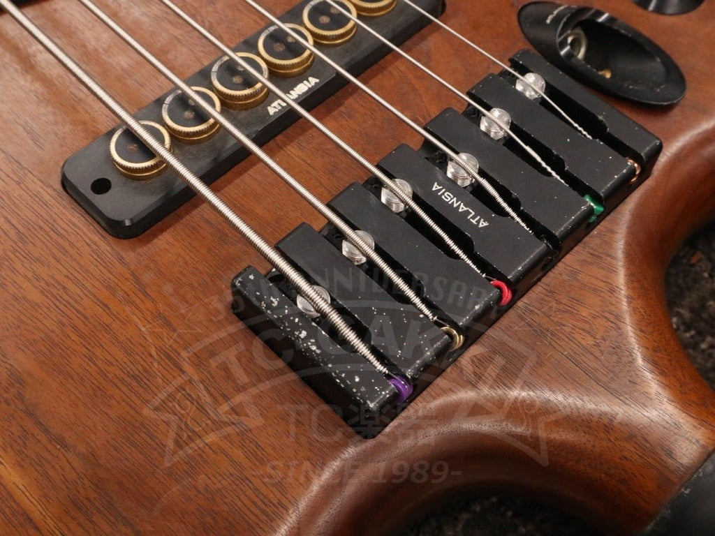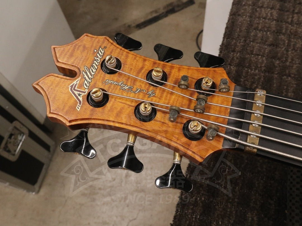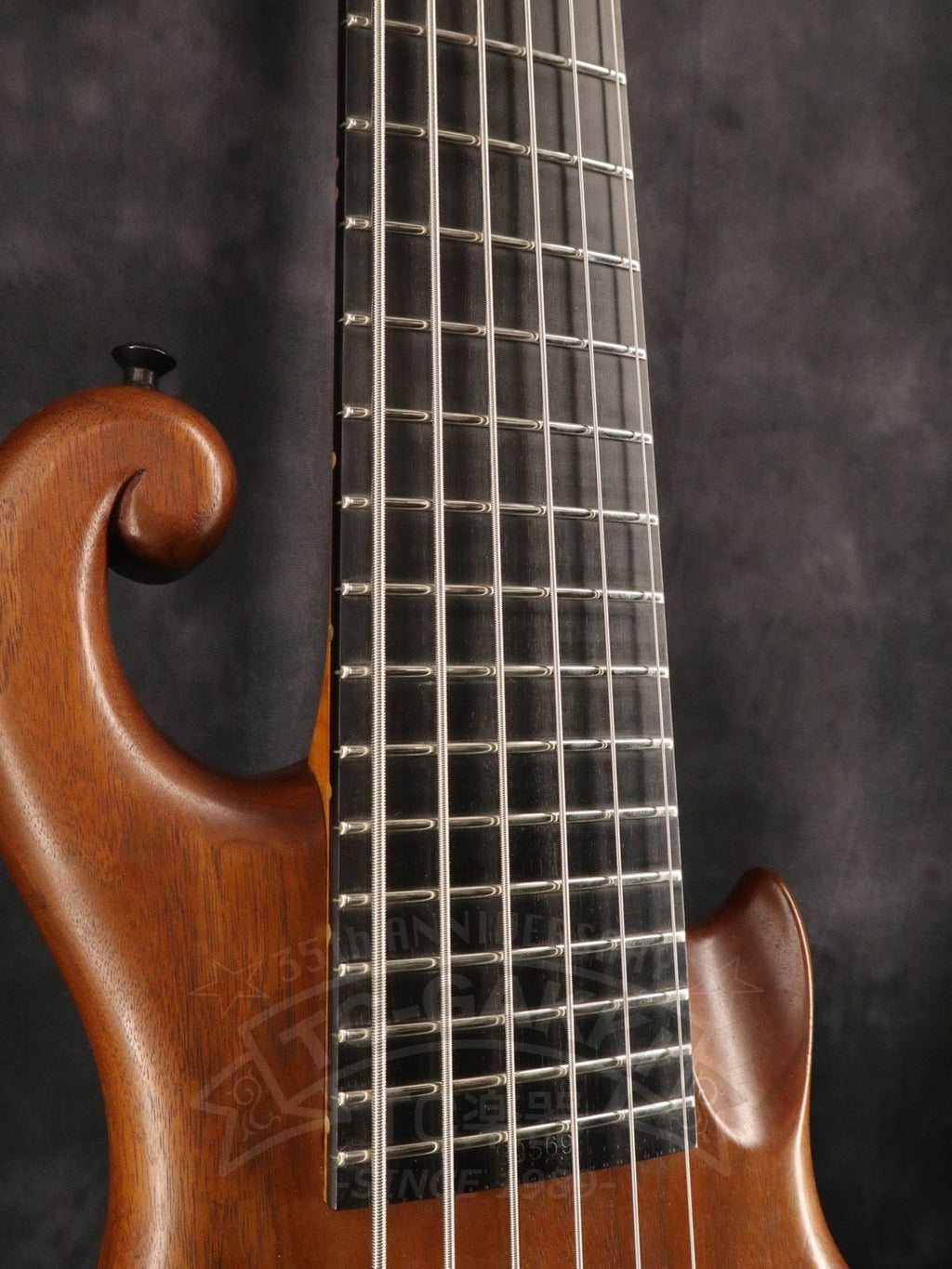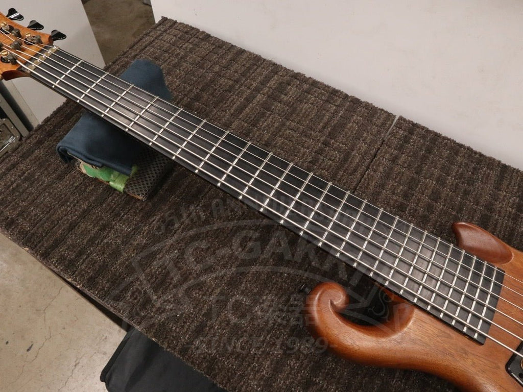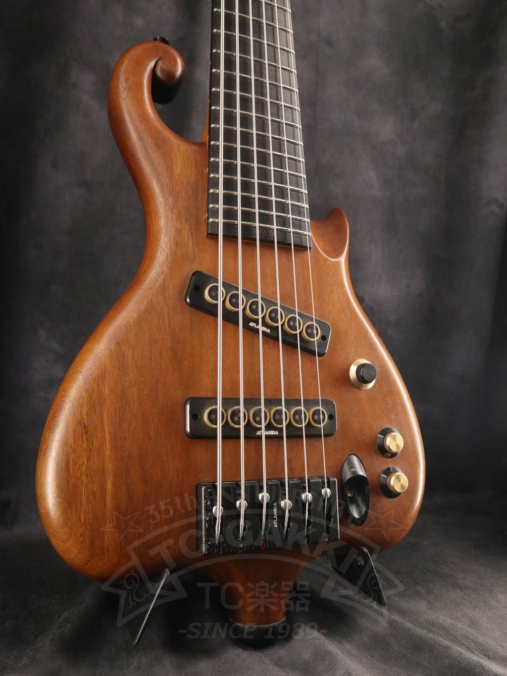 さすがにAtlansia特有の円錐状のネックではありませんが、もっちりとしたグリップ感で、6弦ベースの中では指板Rがついていて厚みのあるネックとなっています。