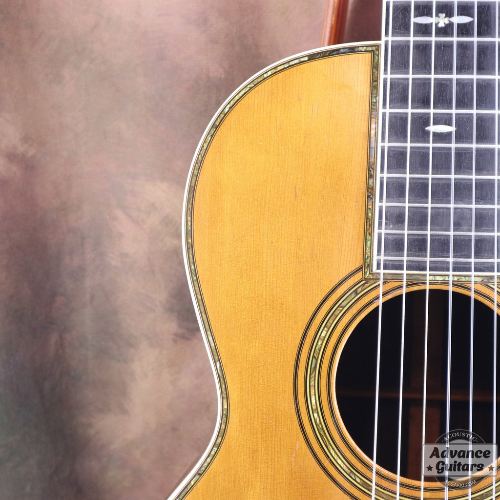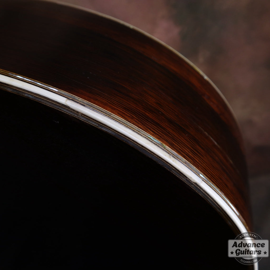 スプルースを使用した00サイズのリムやロゼッタにはアバロン・シェルの装飾が施されています。